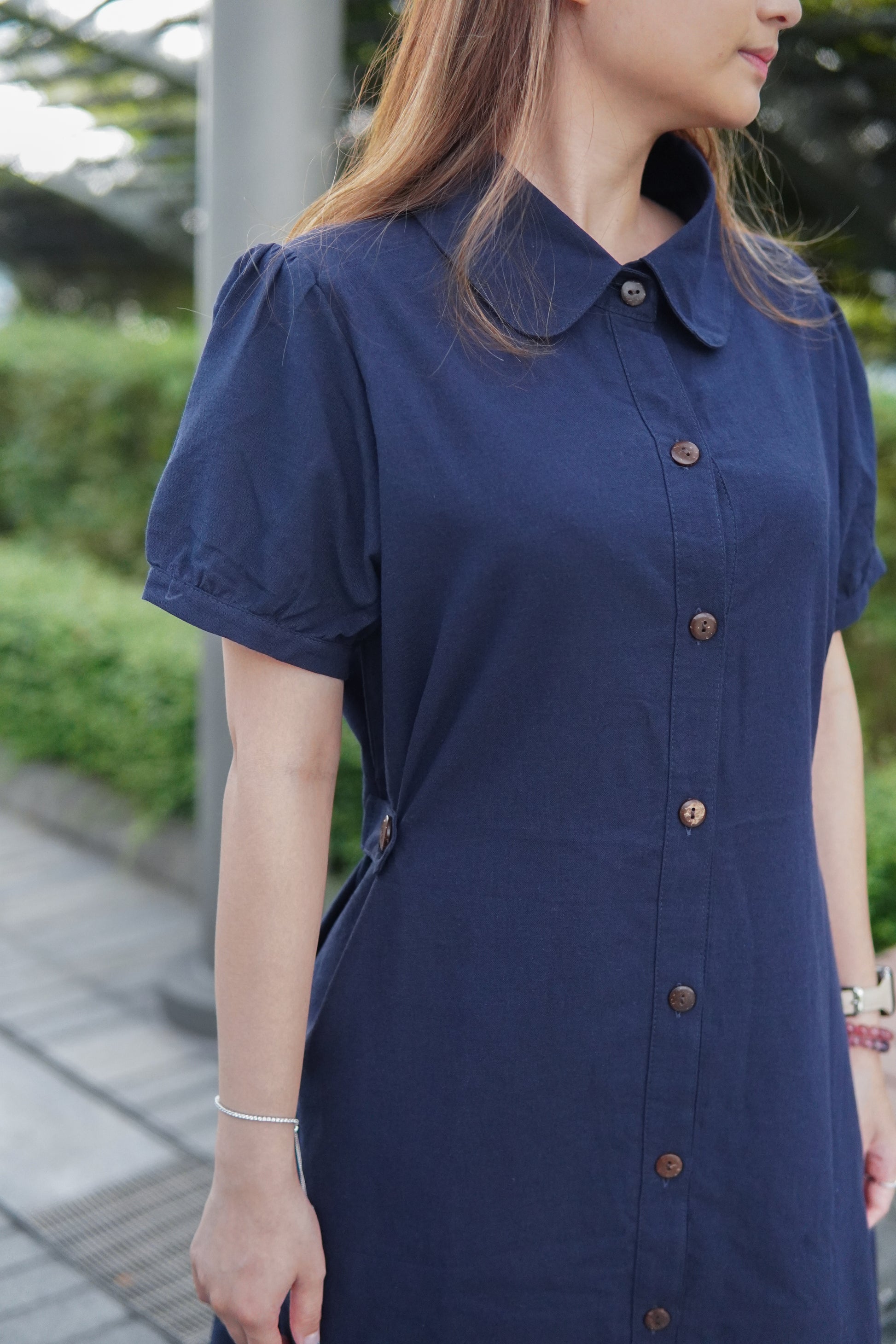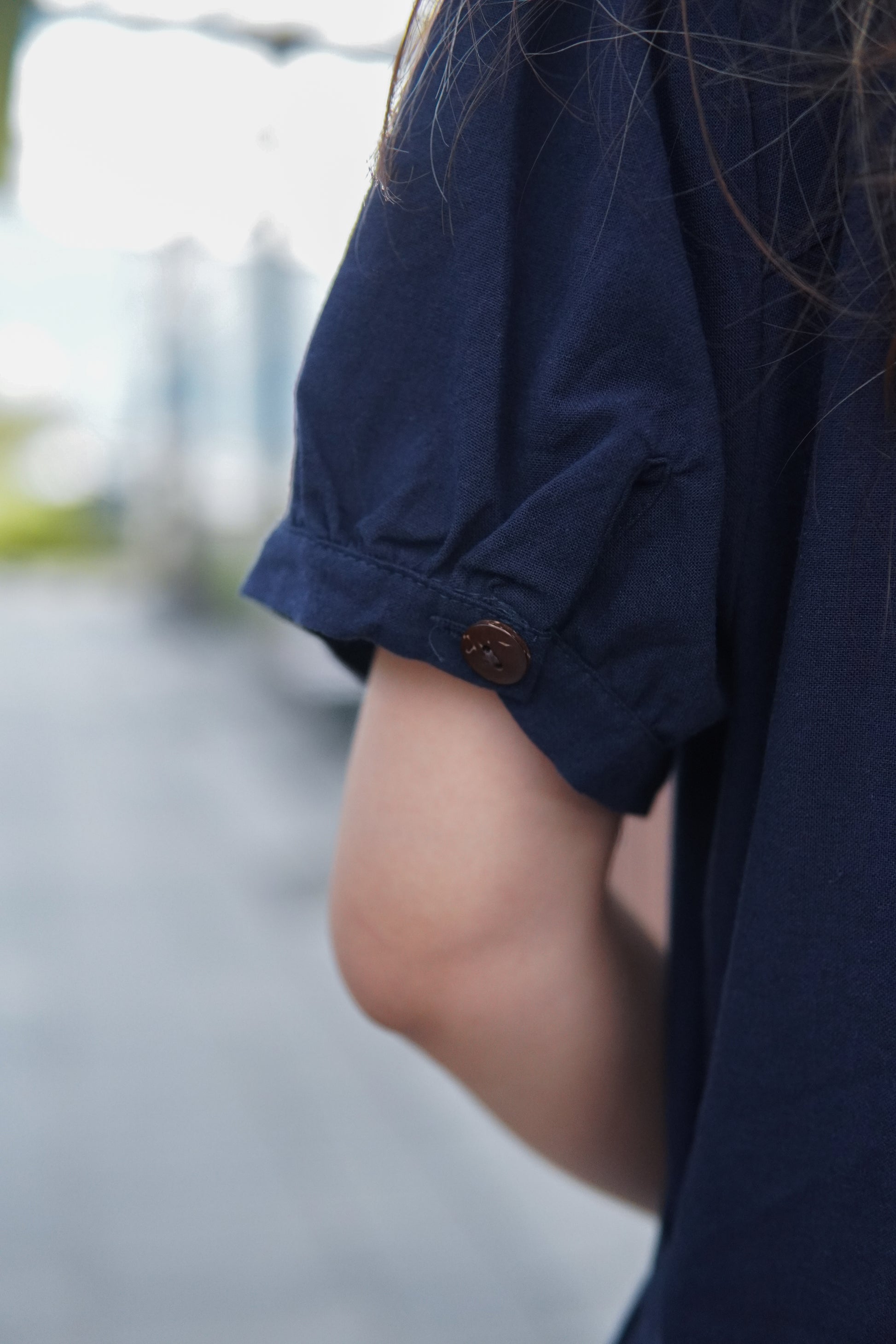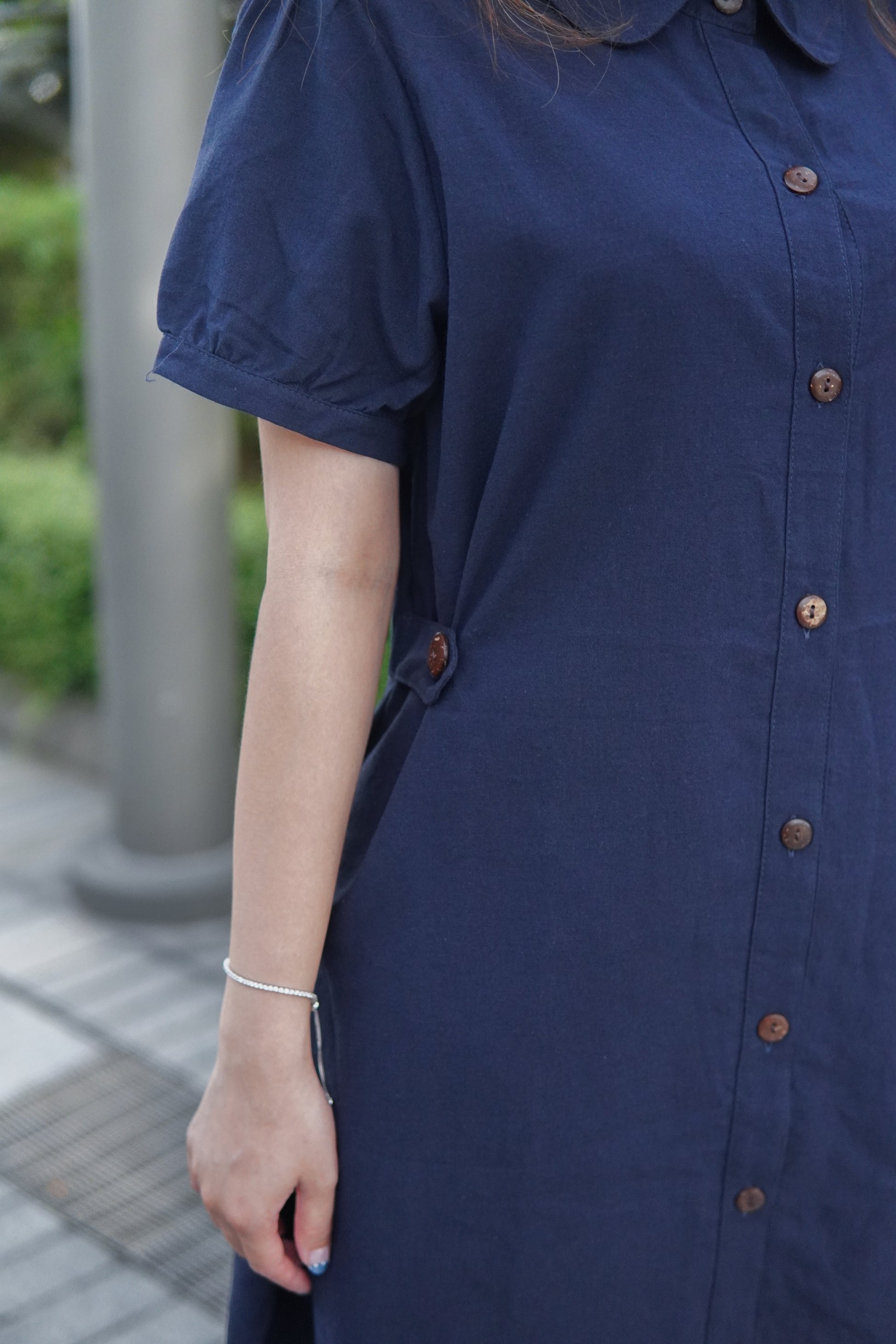 微泡泡袖設計配搭一粒鈕 可以修飾手臂線條😆