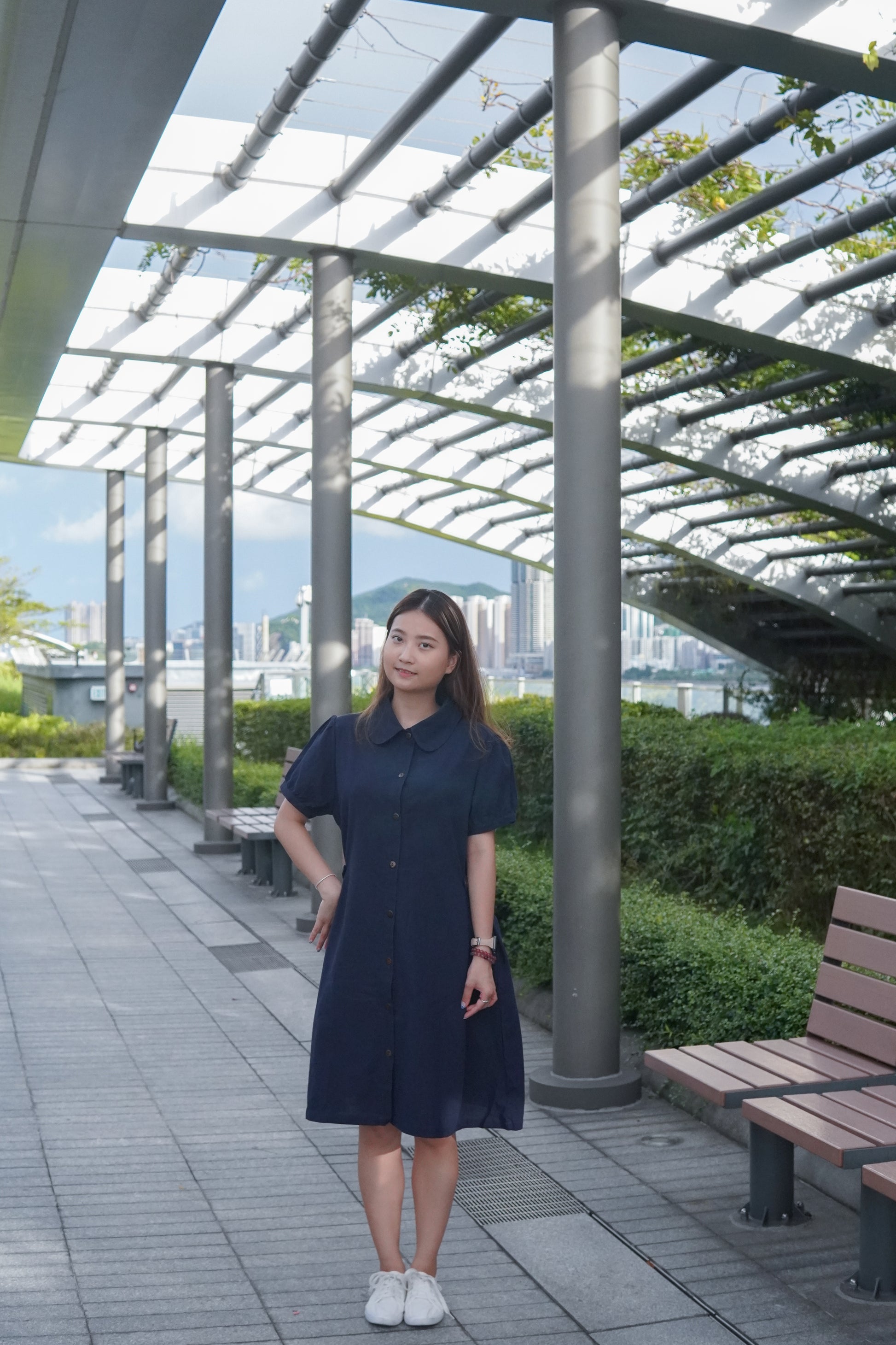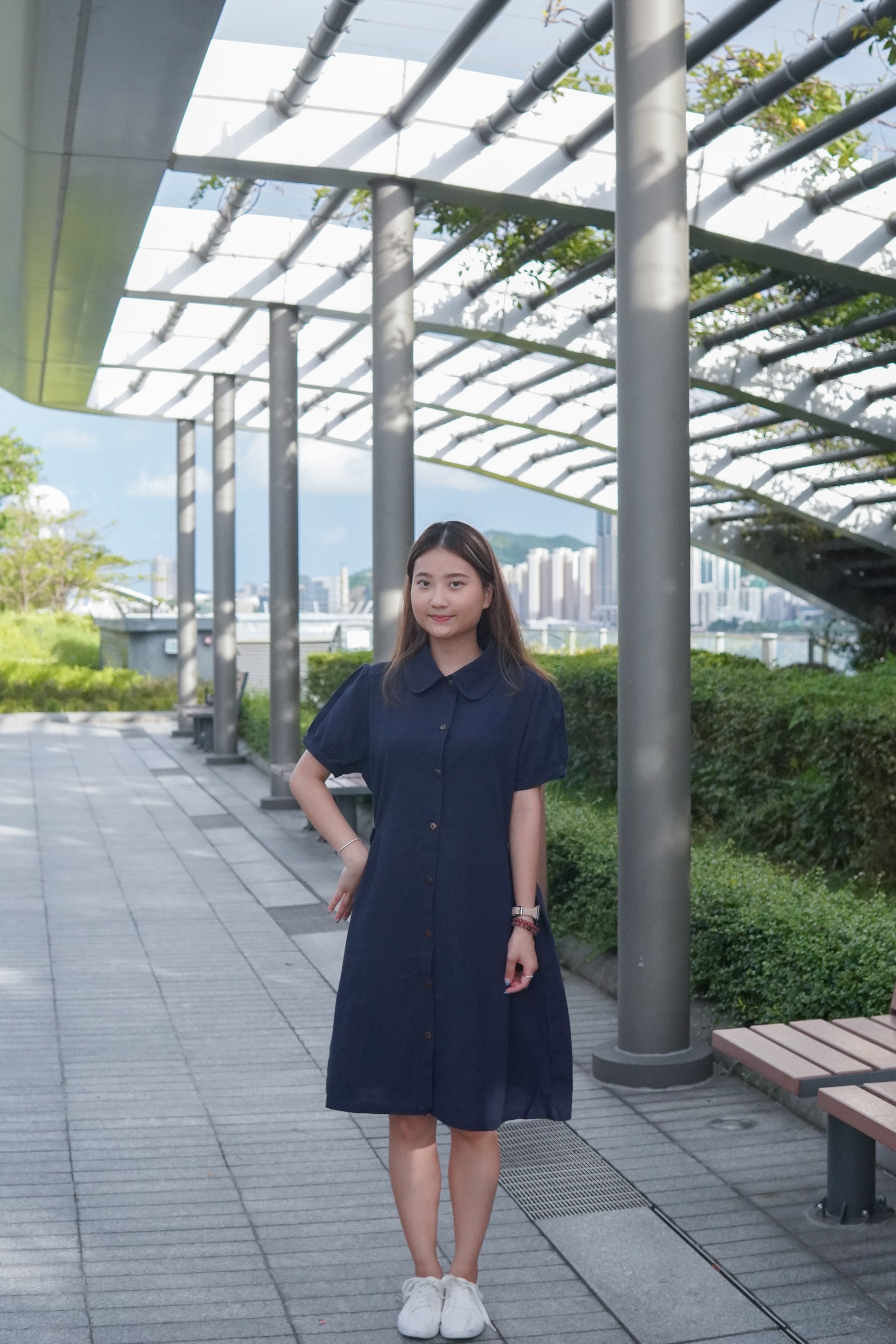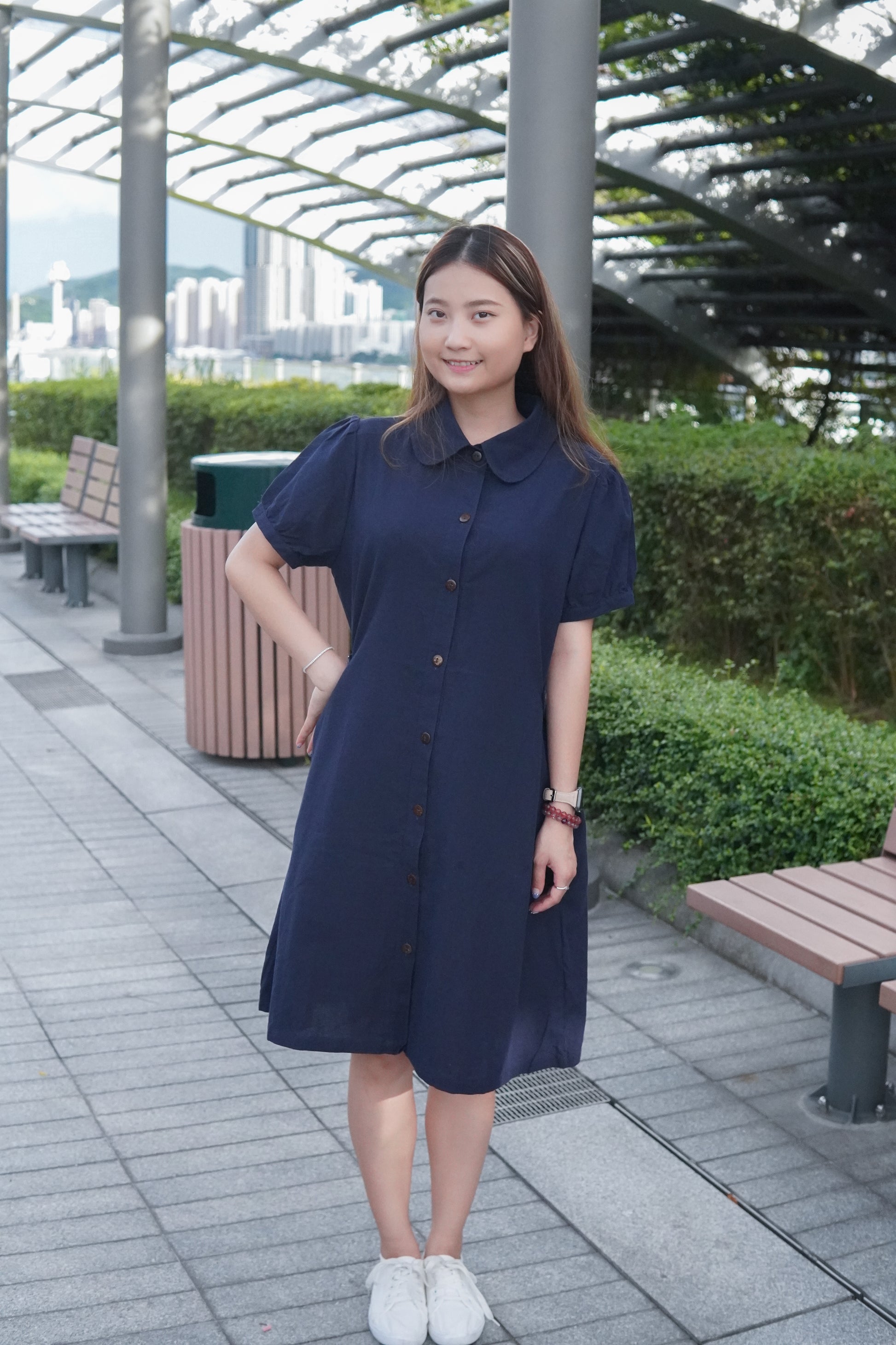 微泡泡袖設計配搭一粒鈕 可以修飾手臂線條😆