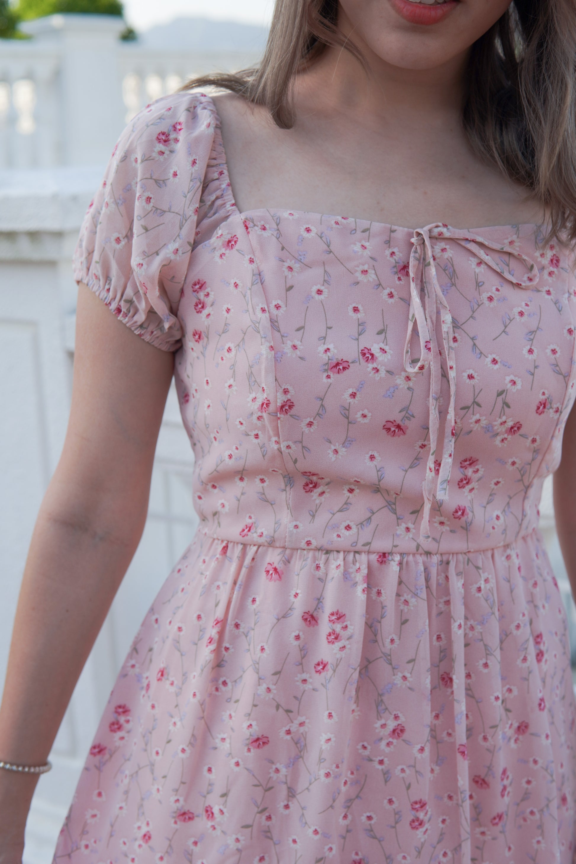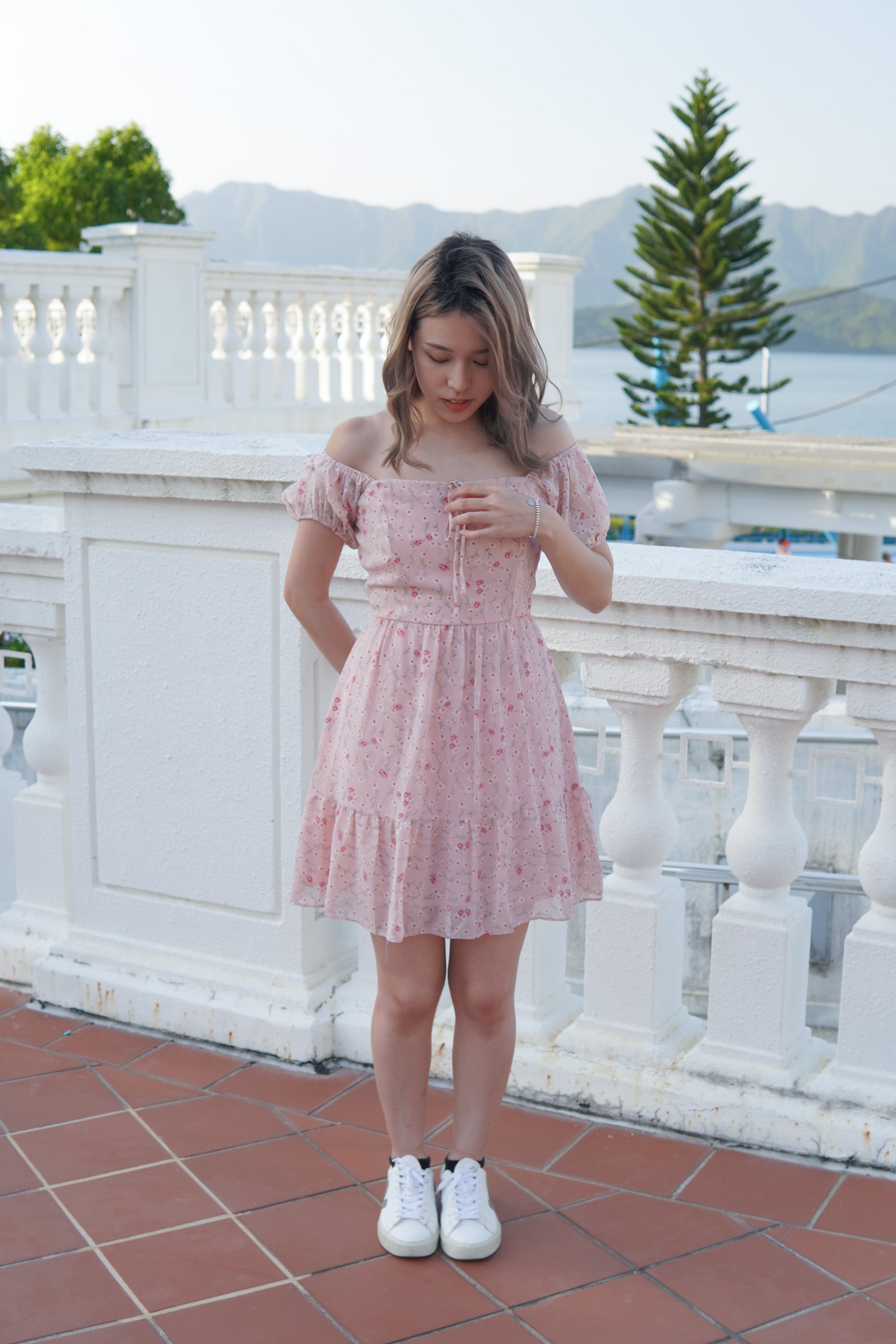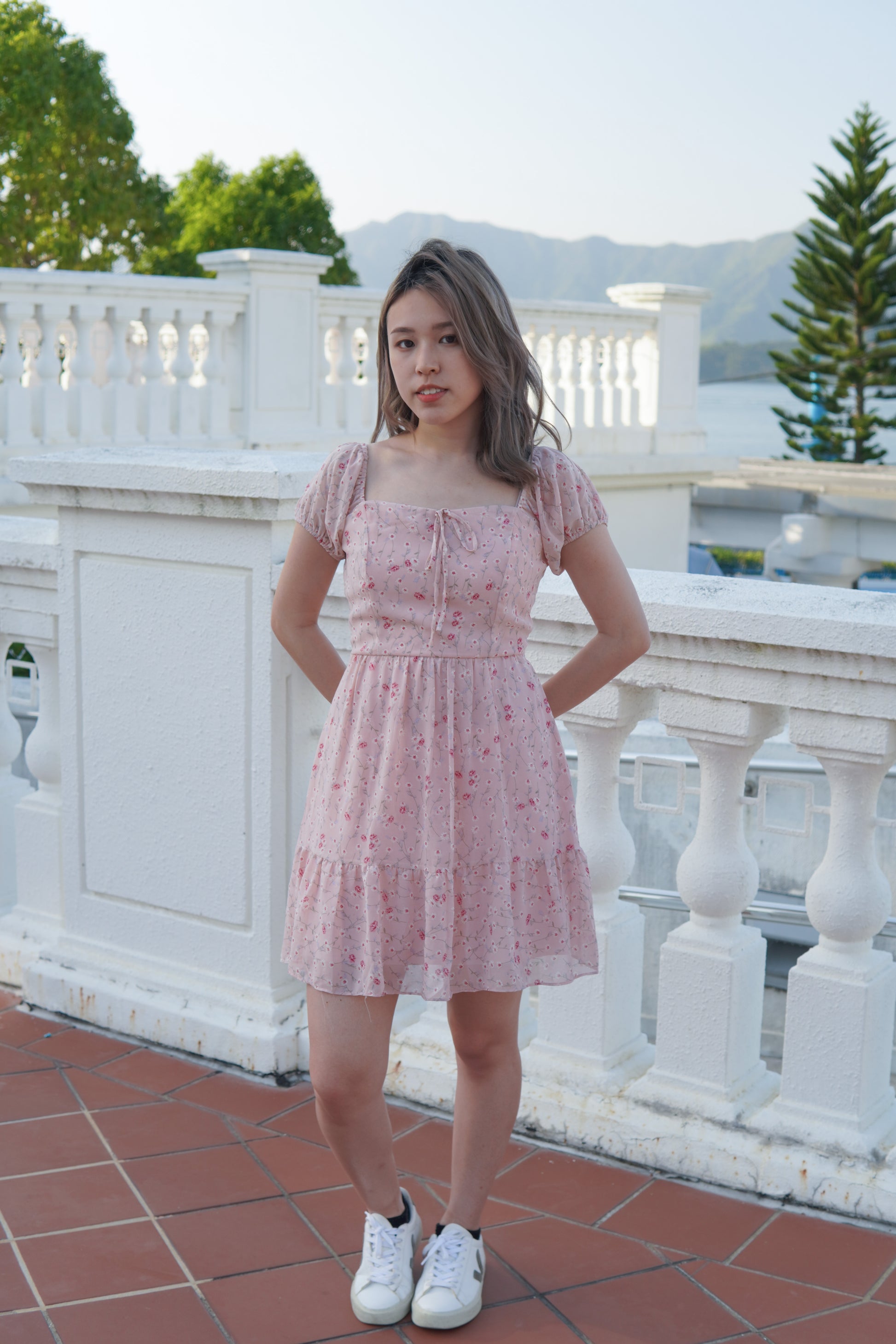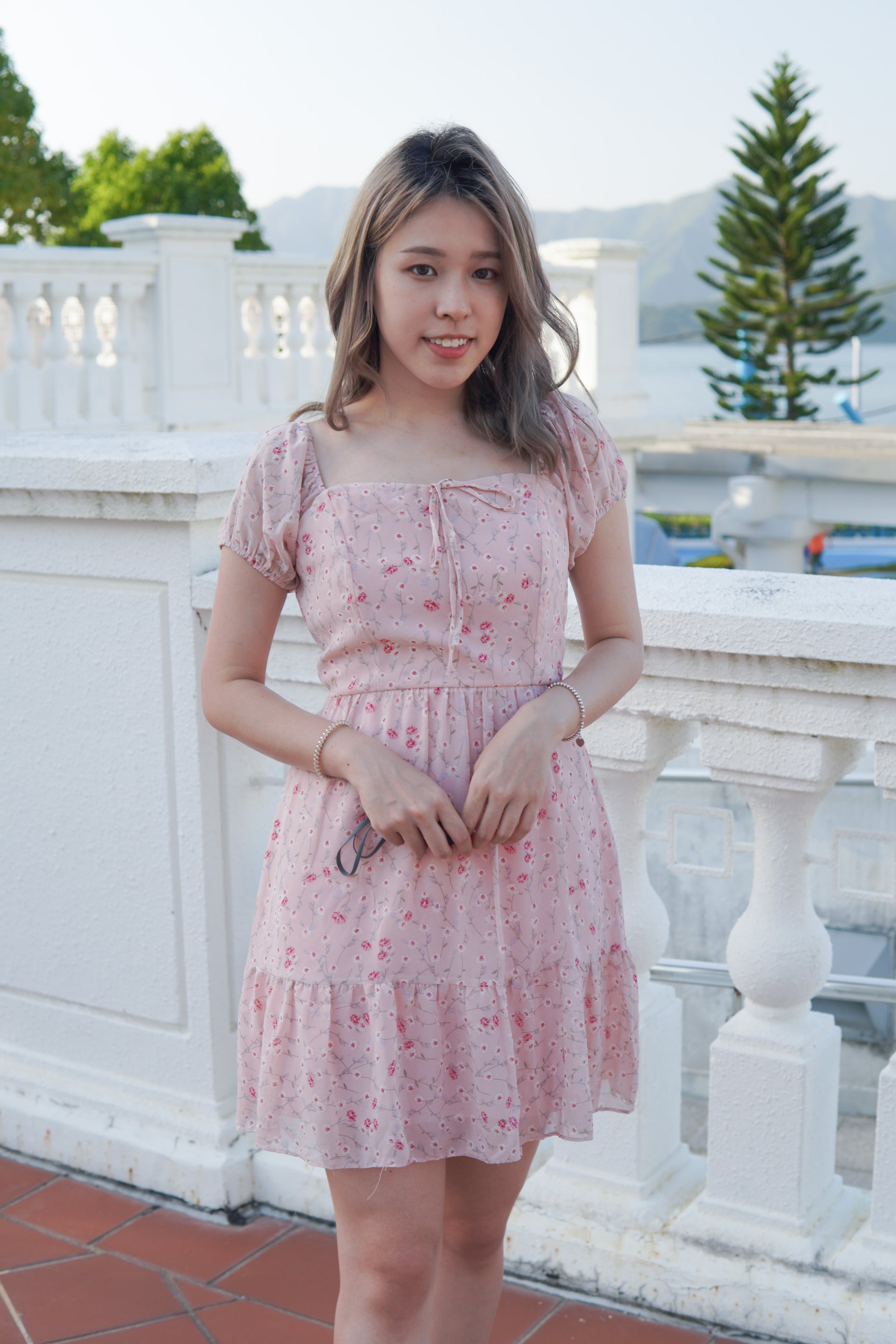 兩着泡泡袖粉紅拼色碎花雪紡OPS | 粉紅 (現貨)