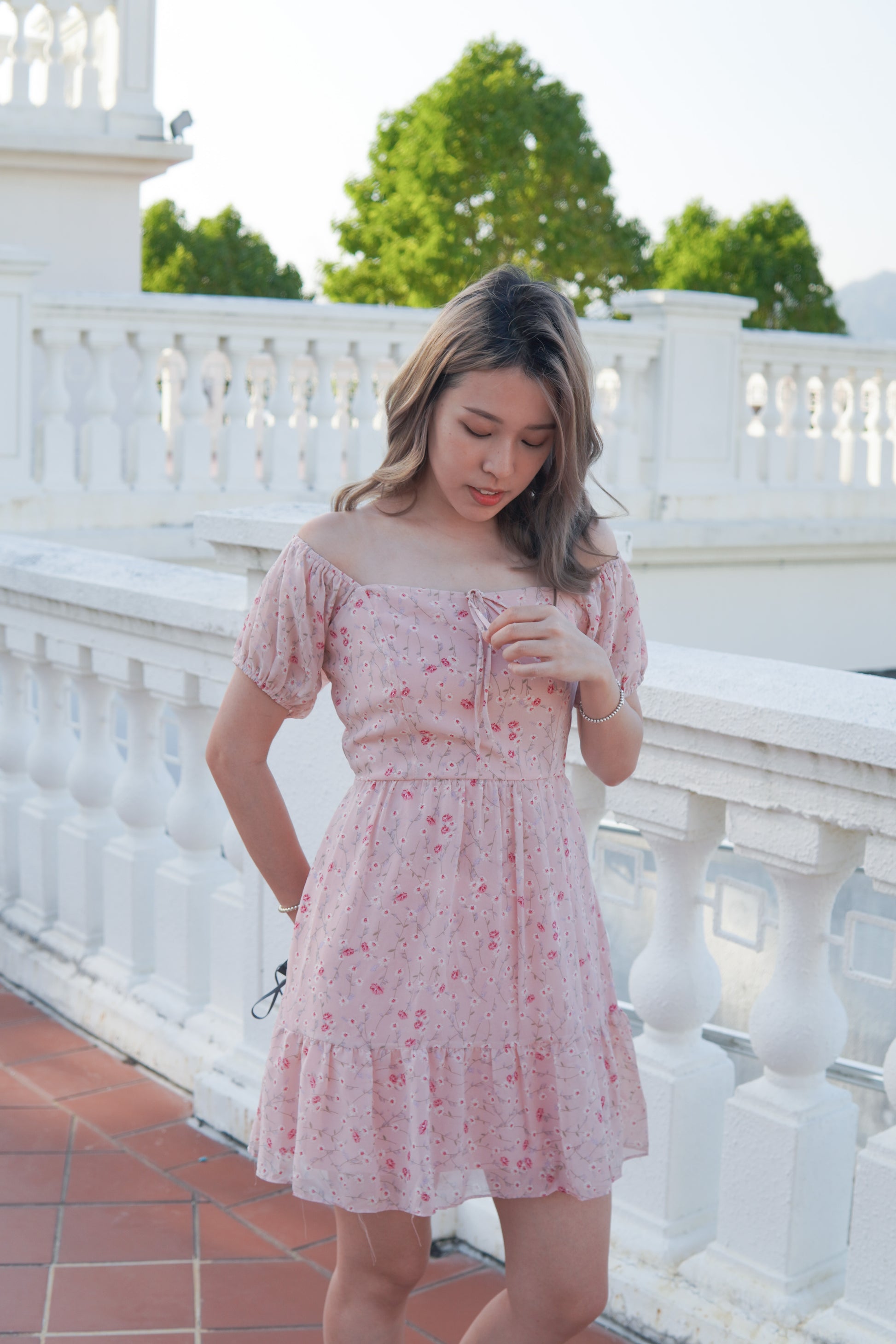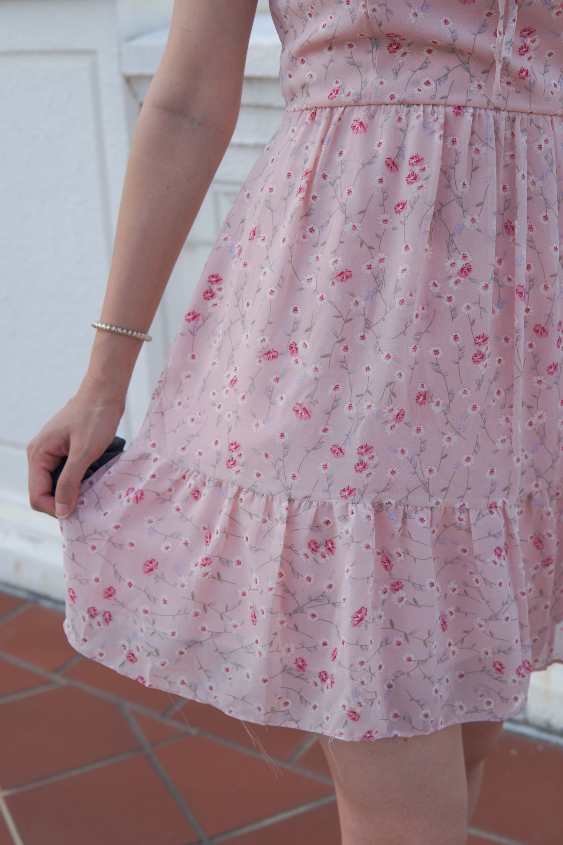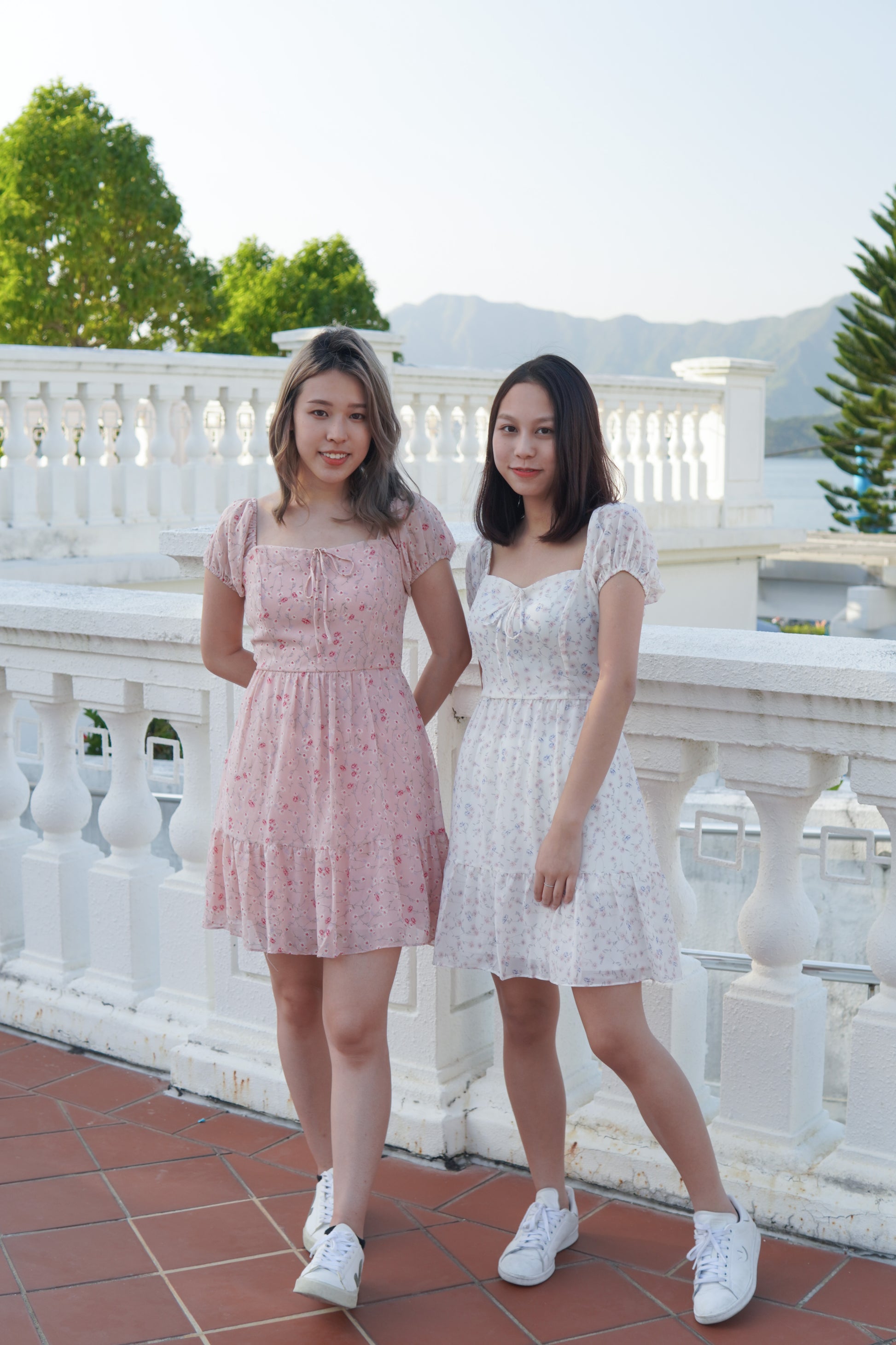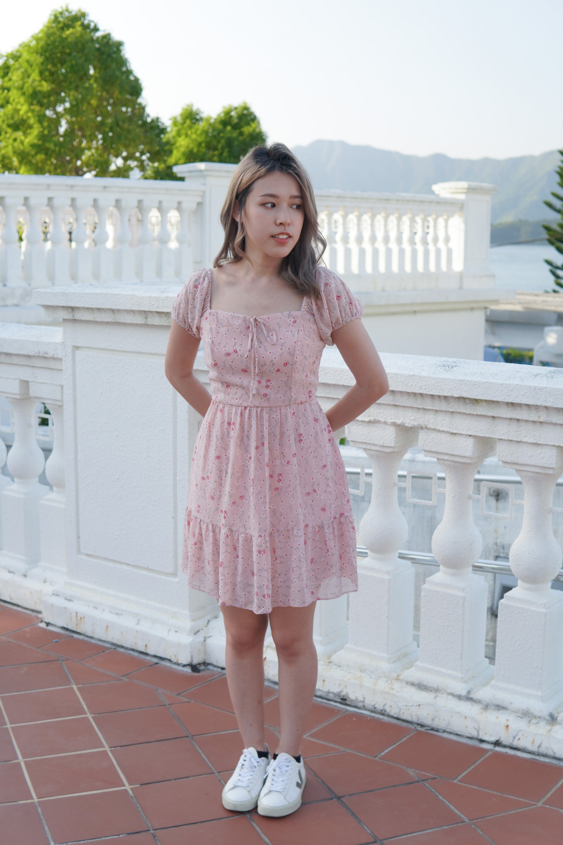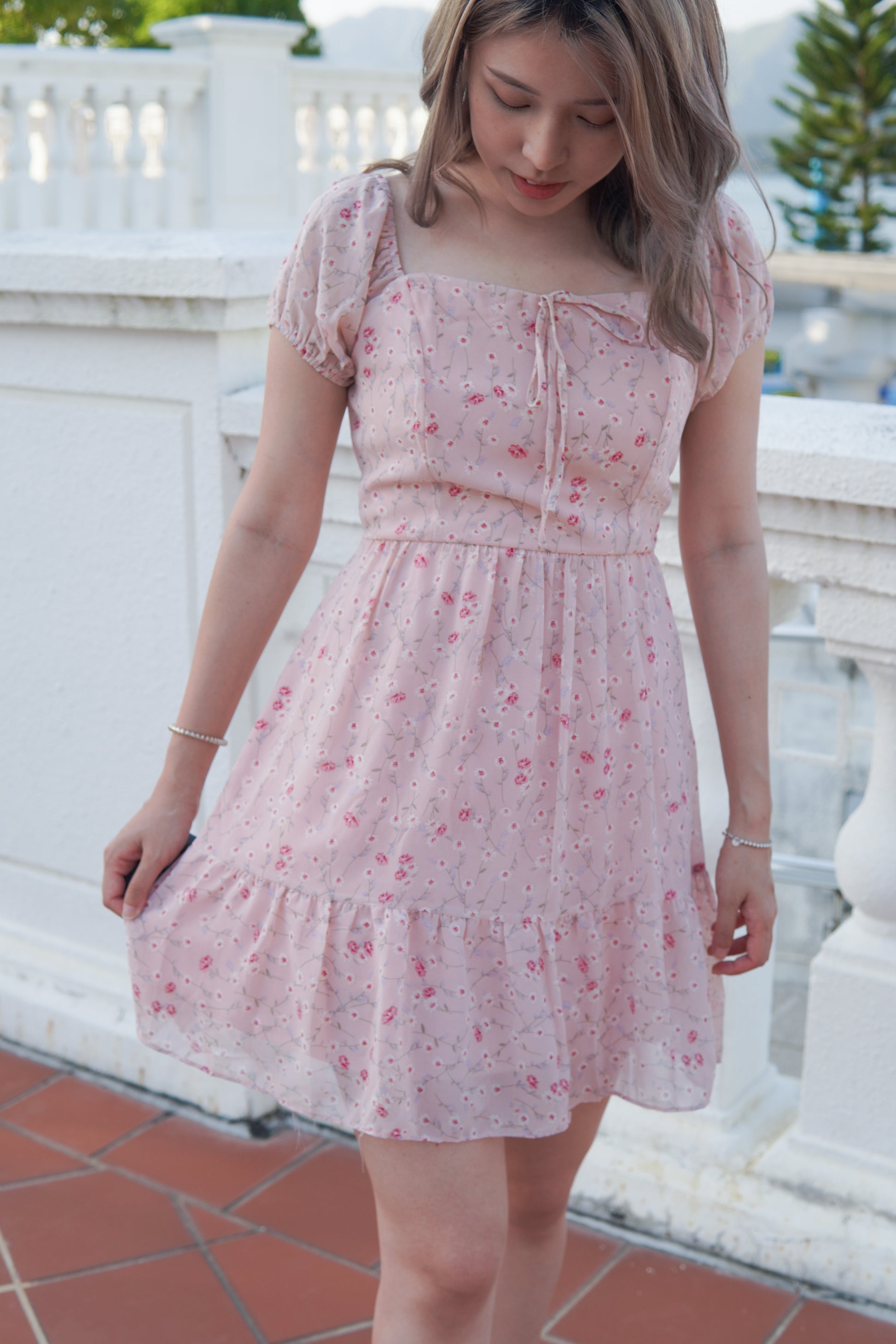 兩着泡泡袖粉紅拼色碎花雪紡OPS | 粉紅 (現貨)