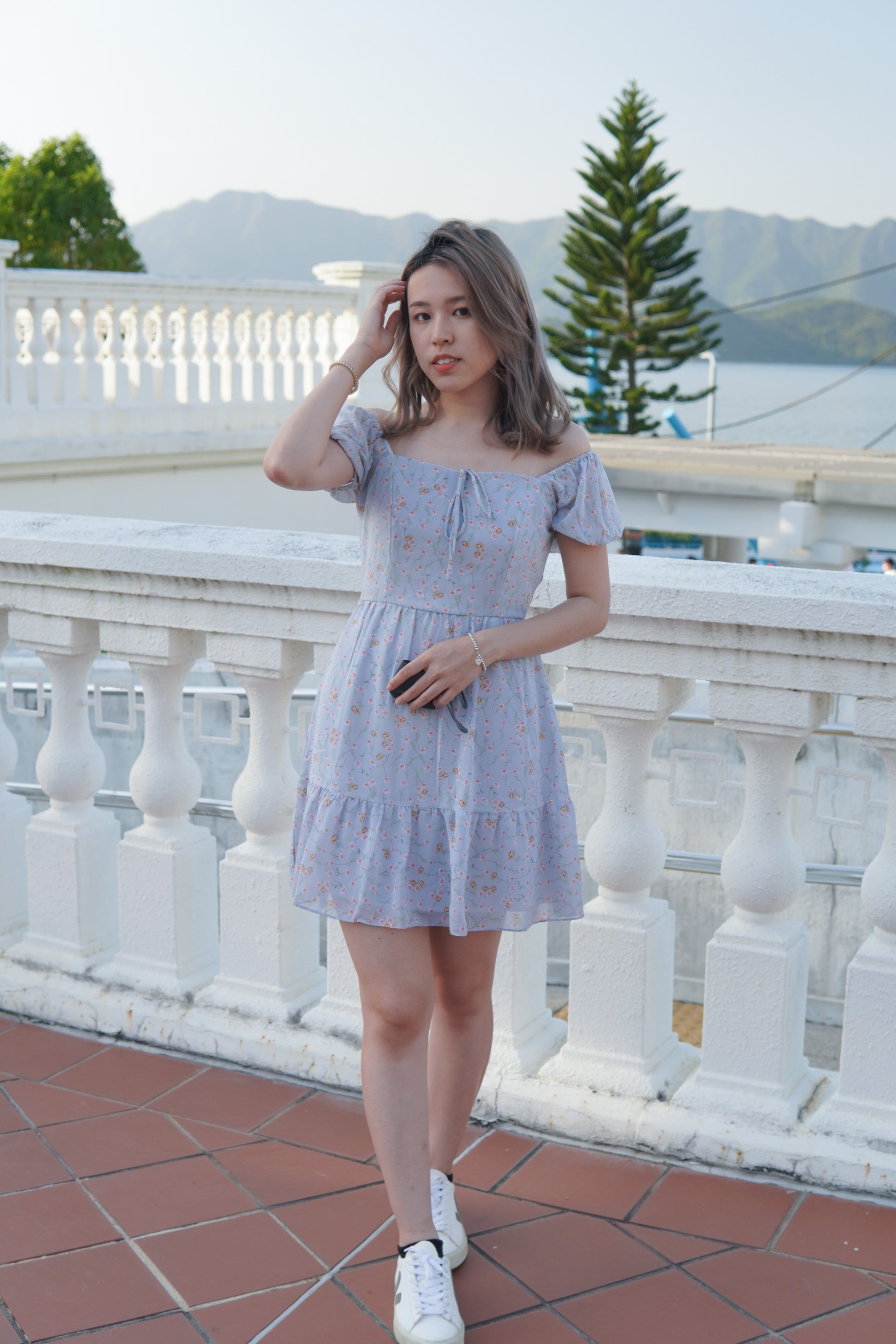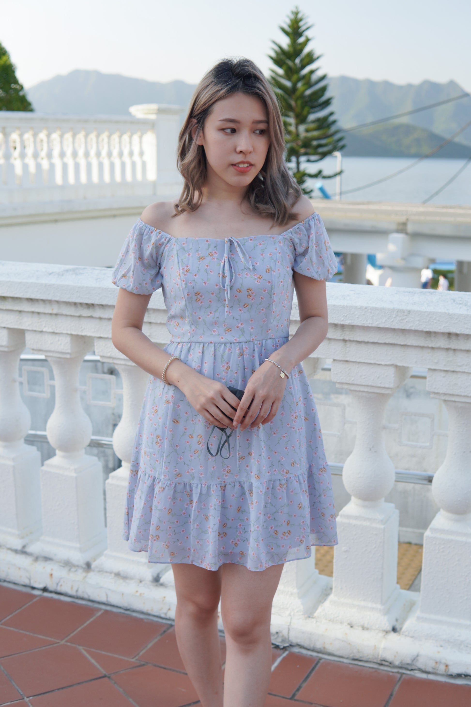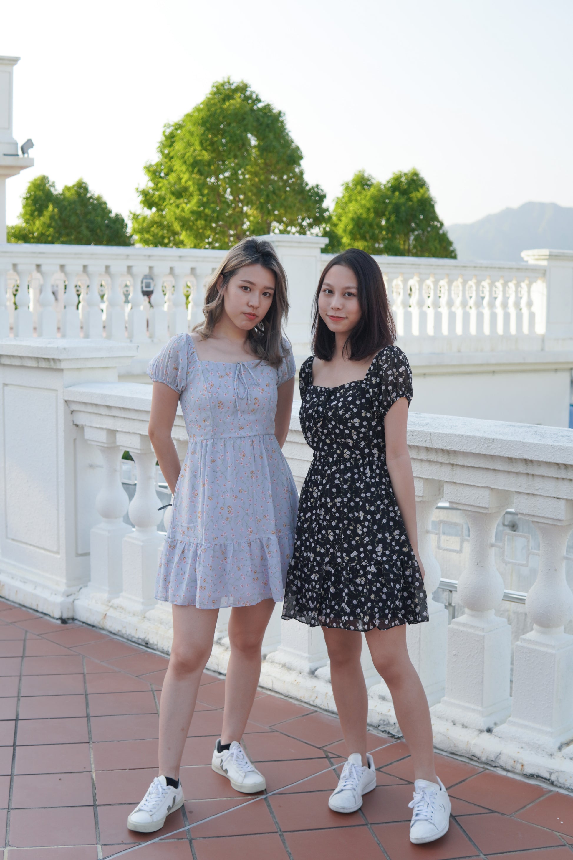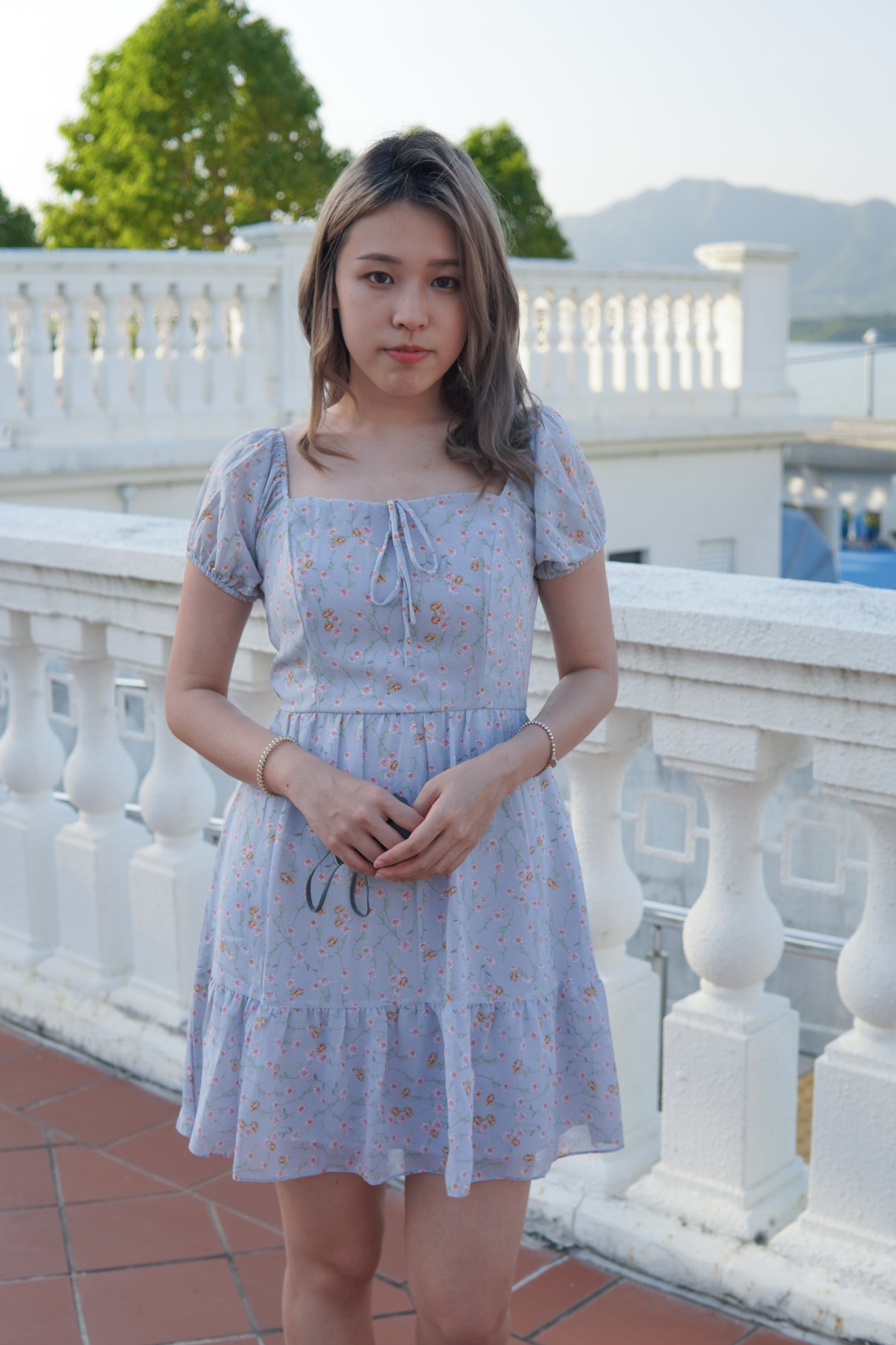 兩着泡泡袖粉紅拼色碎花雪紡OPS | 粉藍 (現貨)