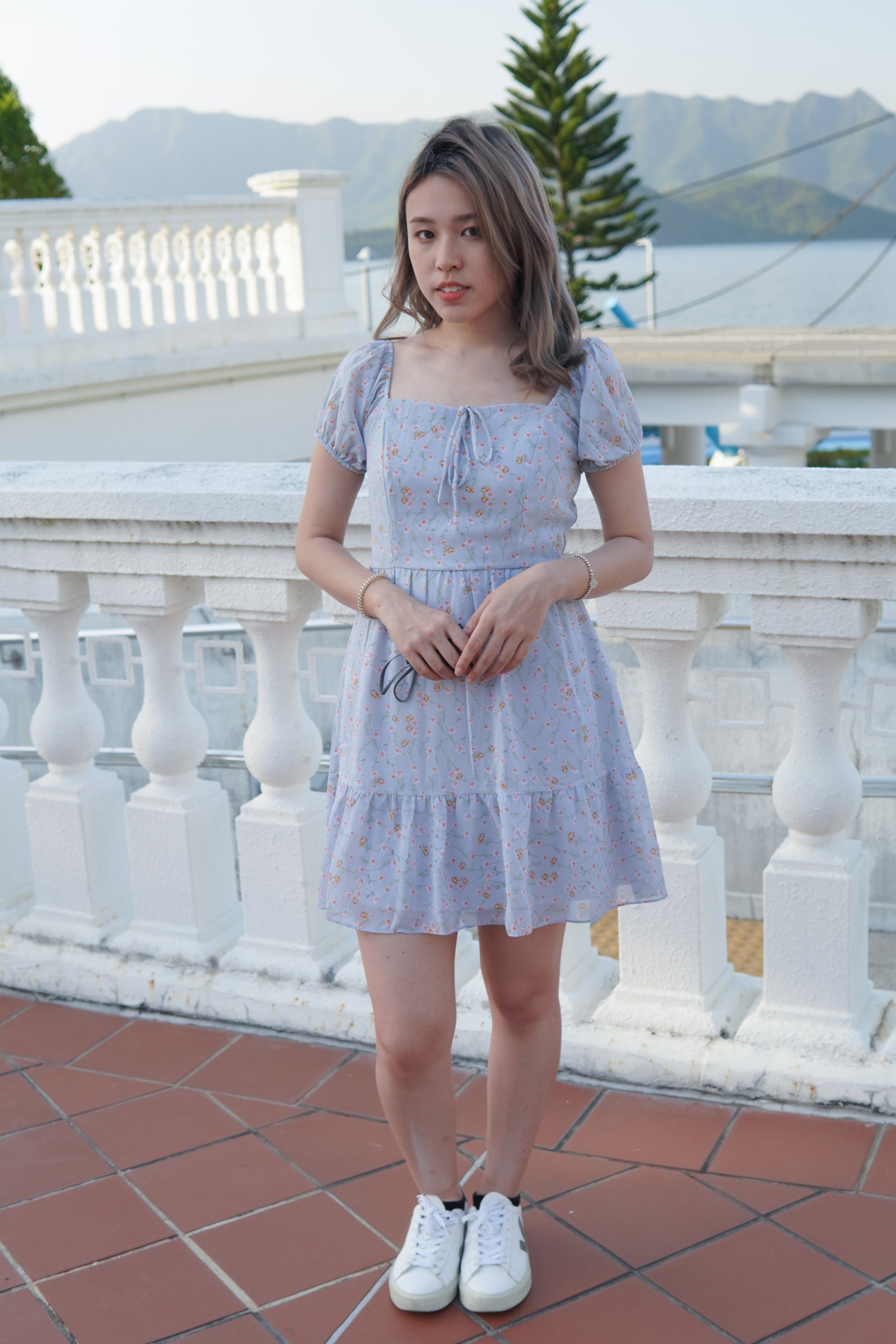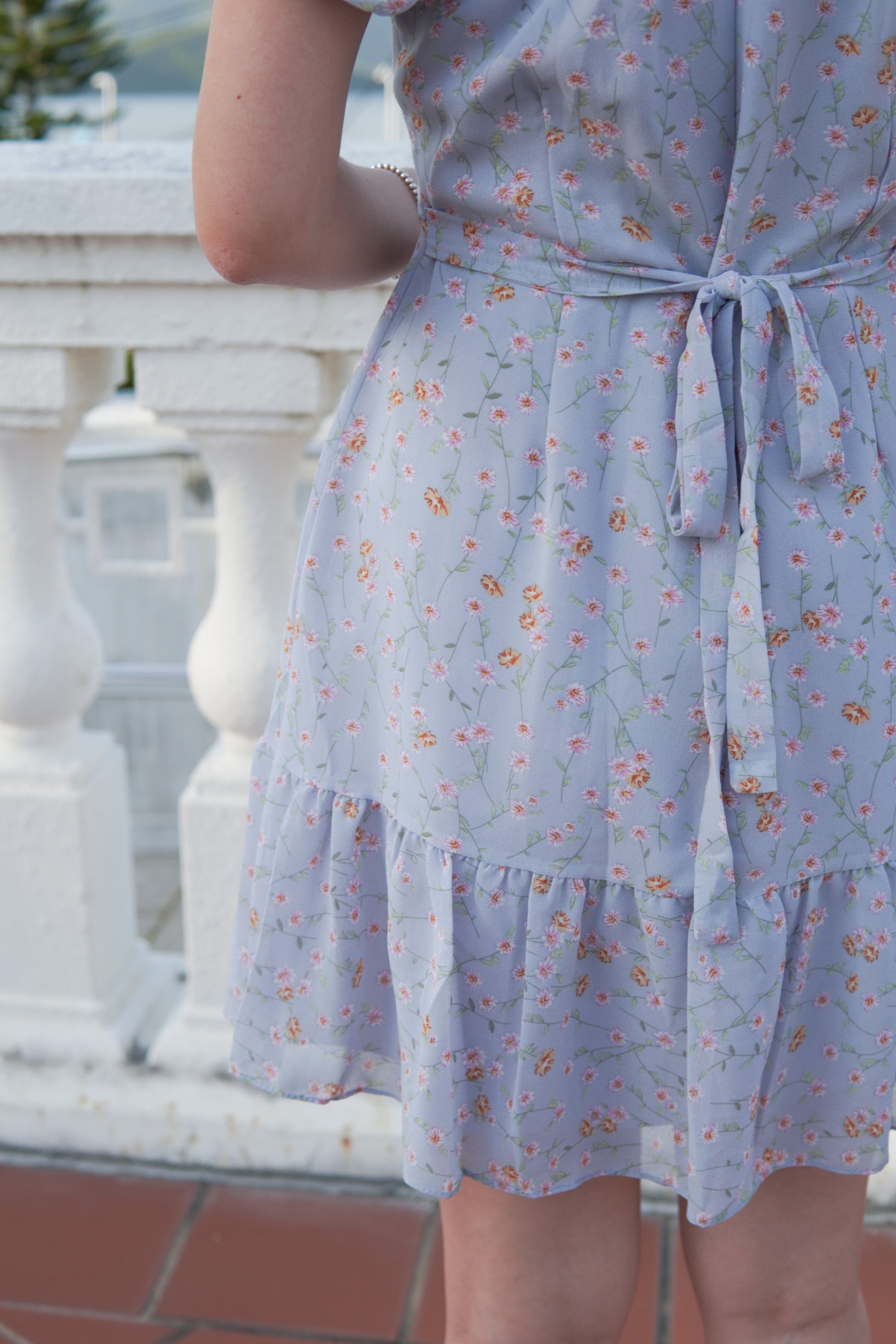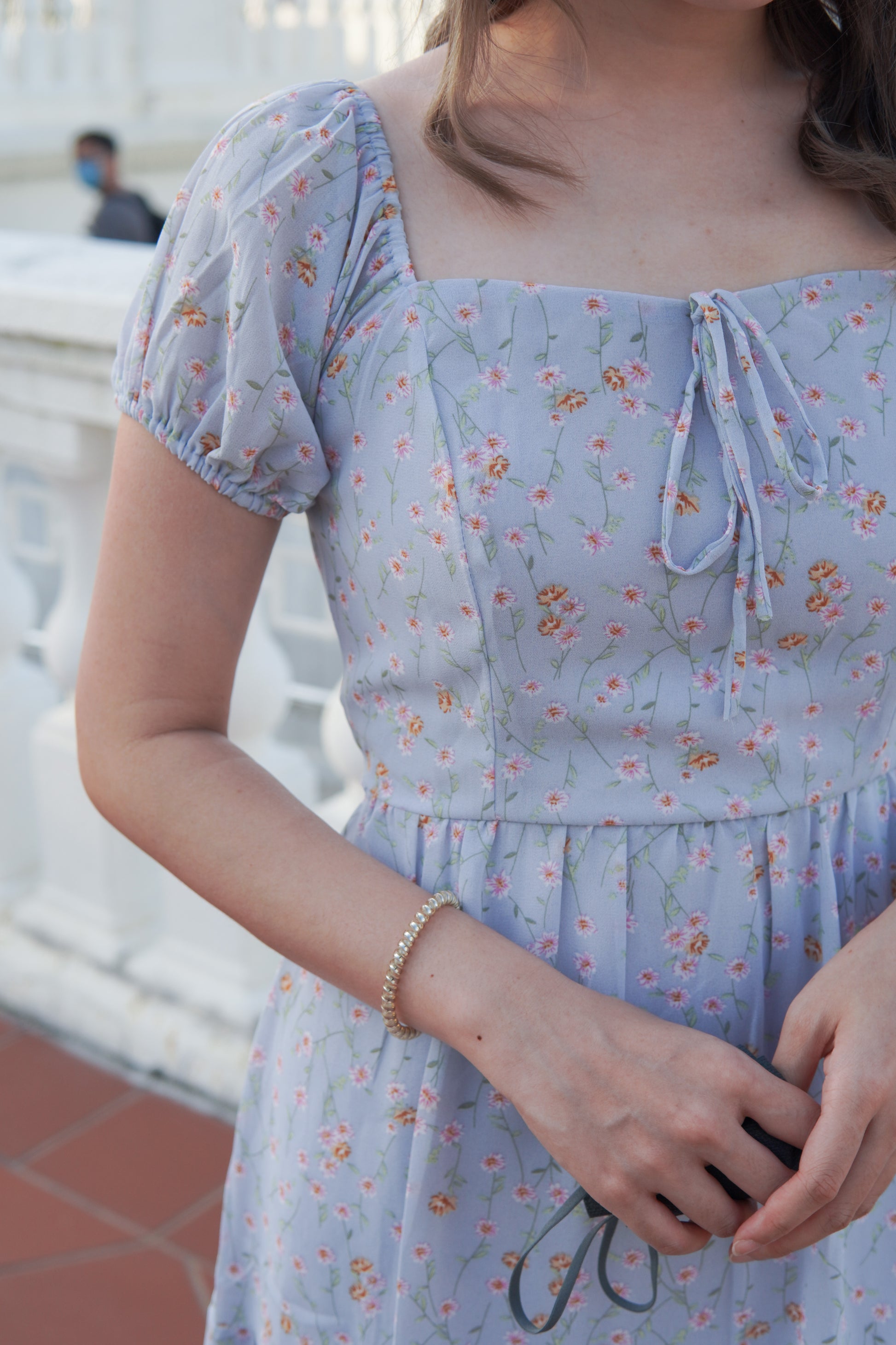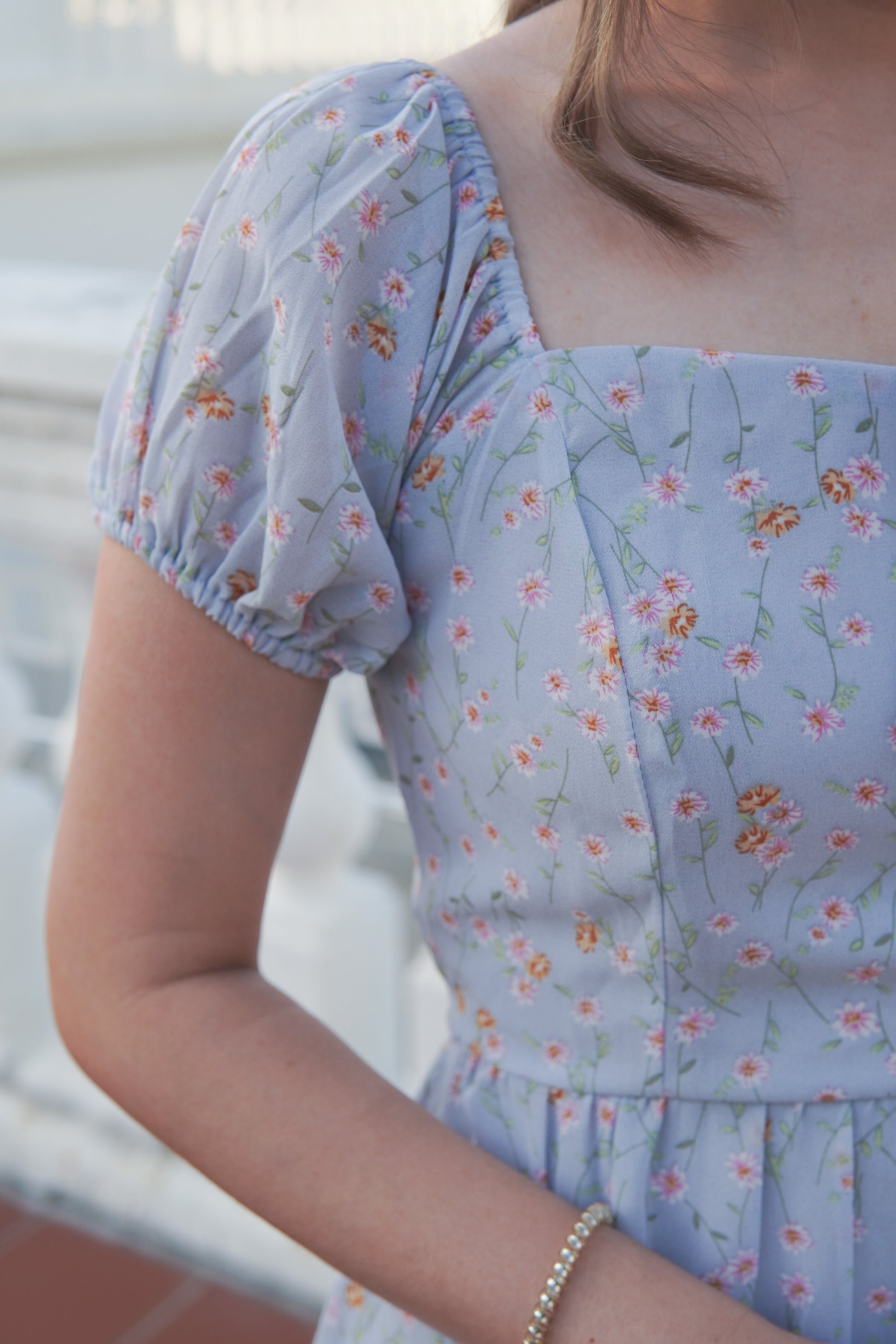 兩着泡泡袖粉紅拼色碎花雪紡OPS | 粉藍 (現貨)