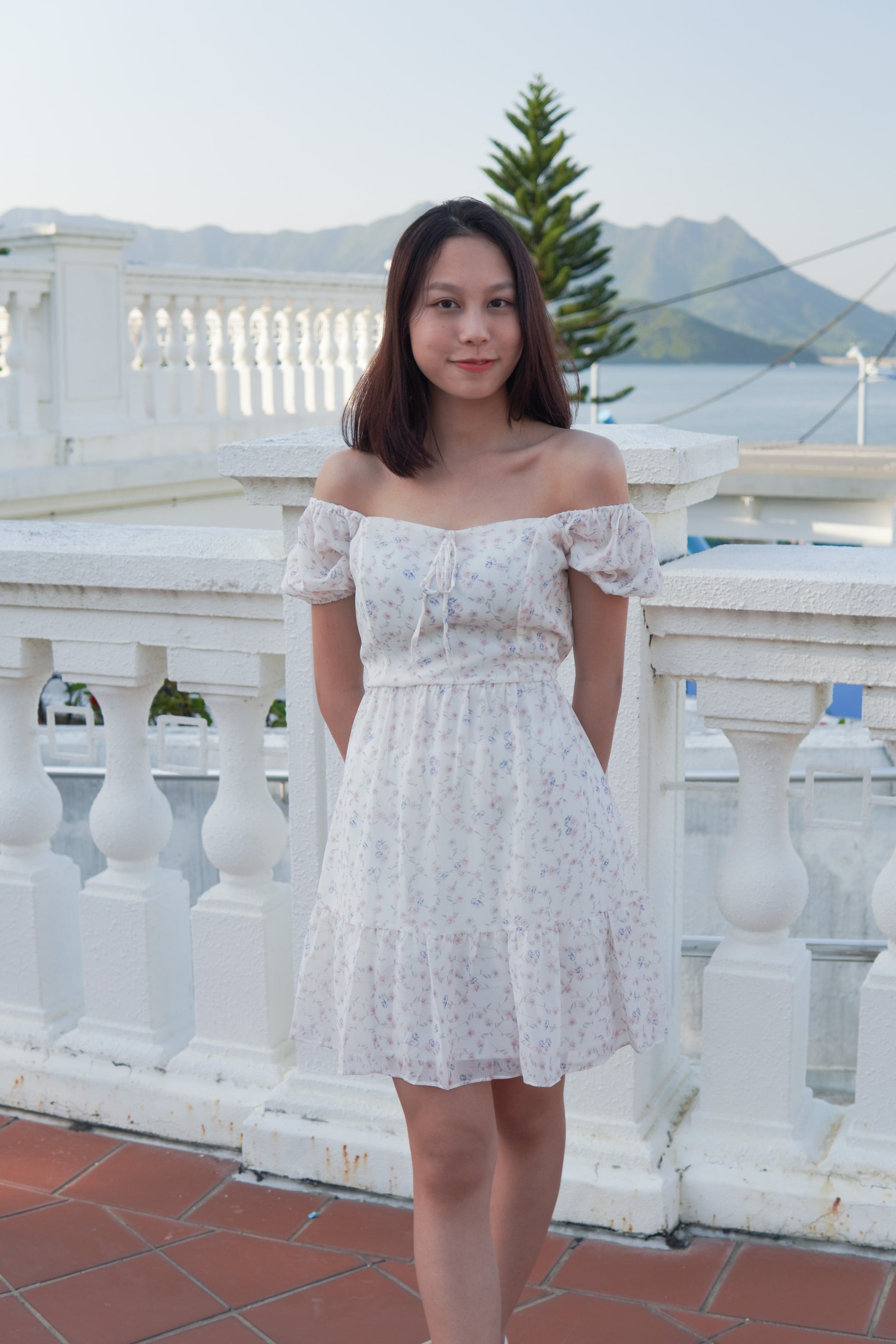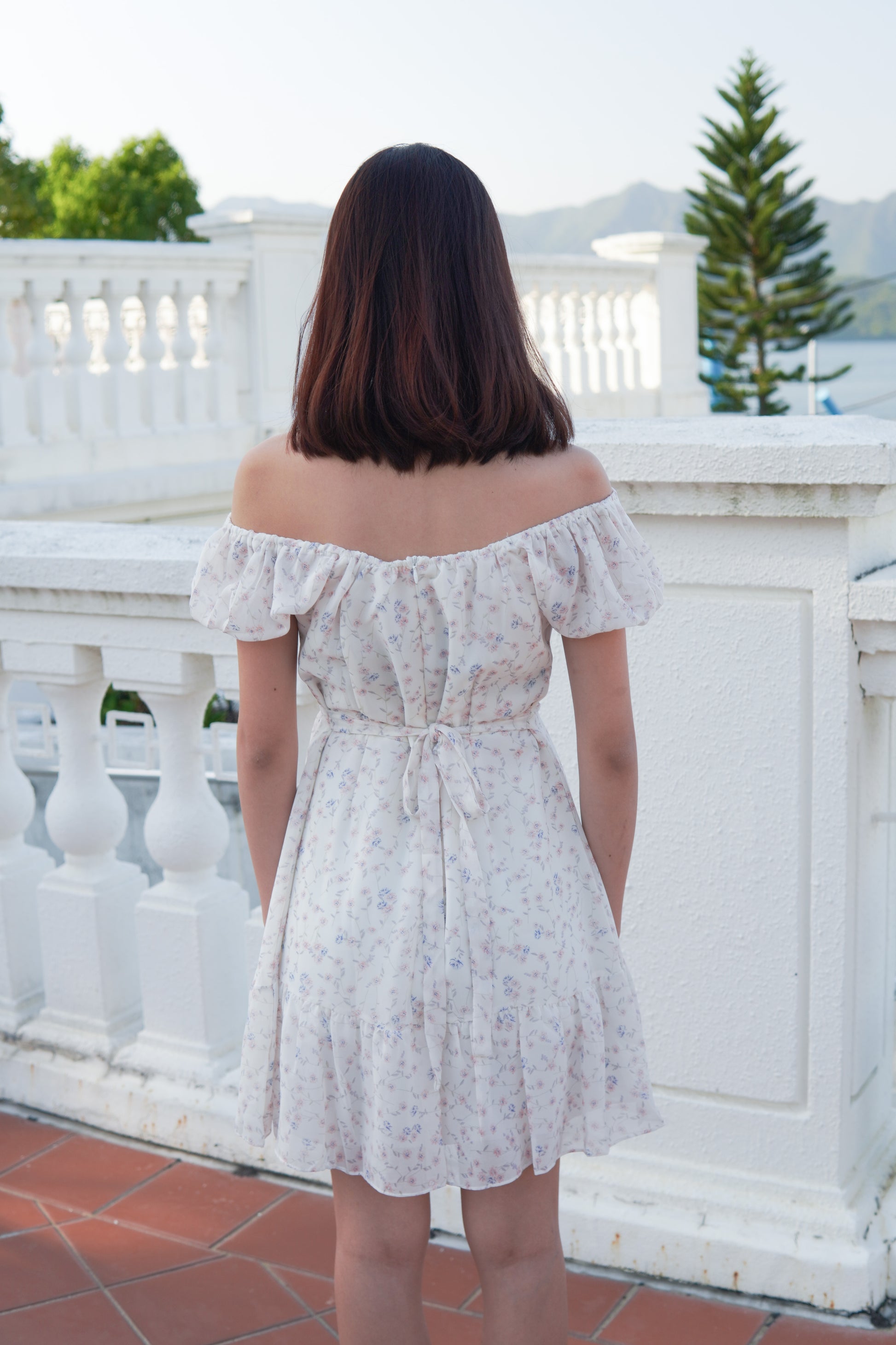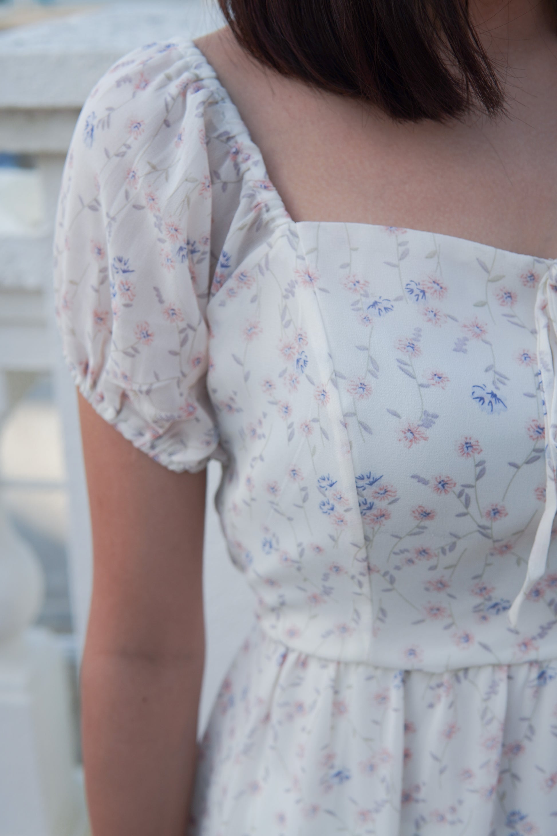 兩着泡泡袖粉紅拼色碎花雪紡OPS | 奶油白 (現貨)