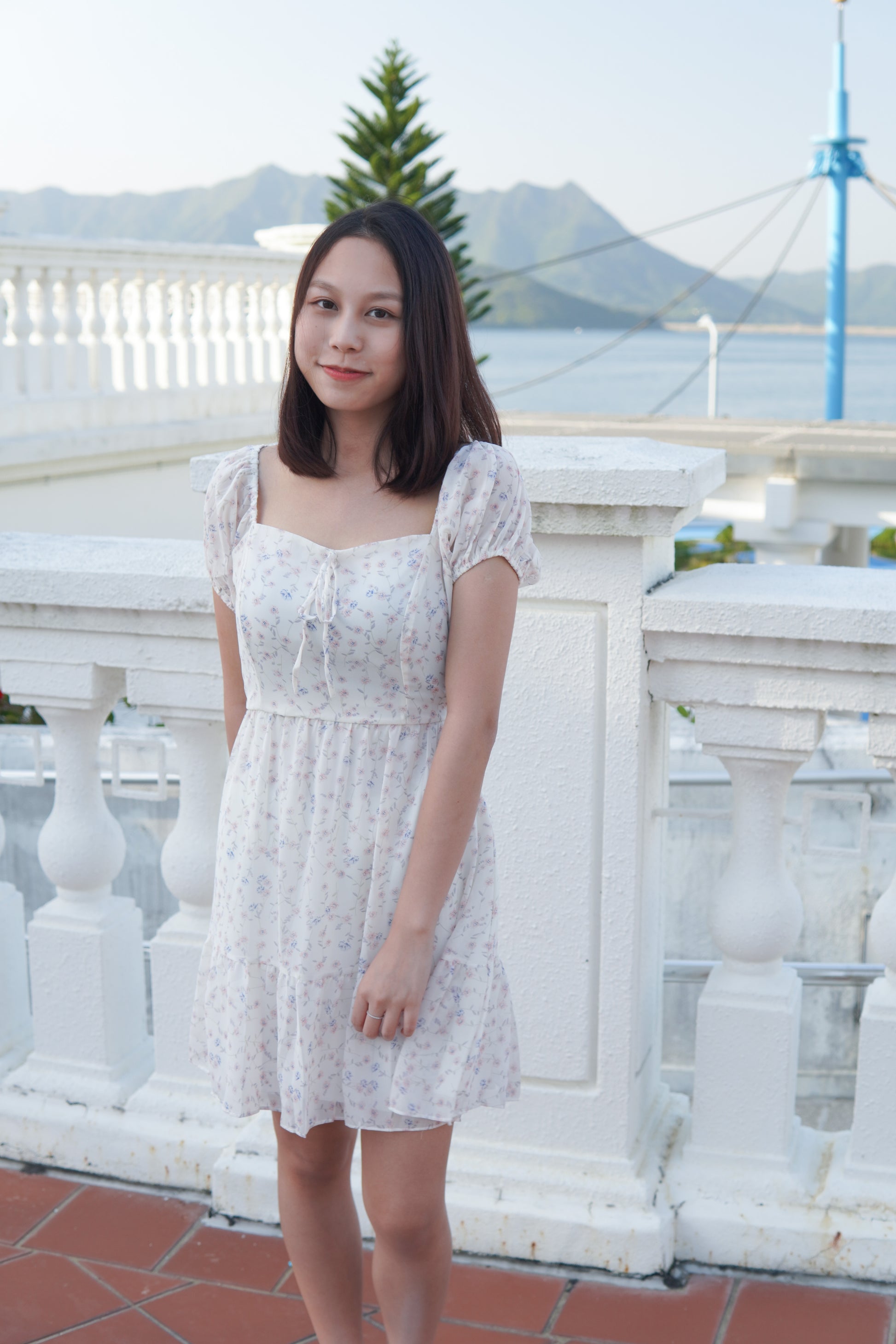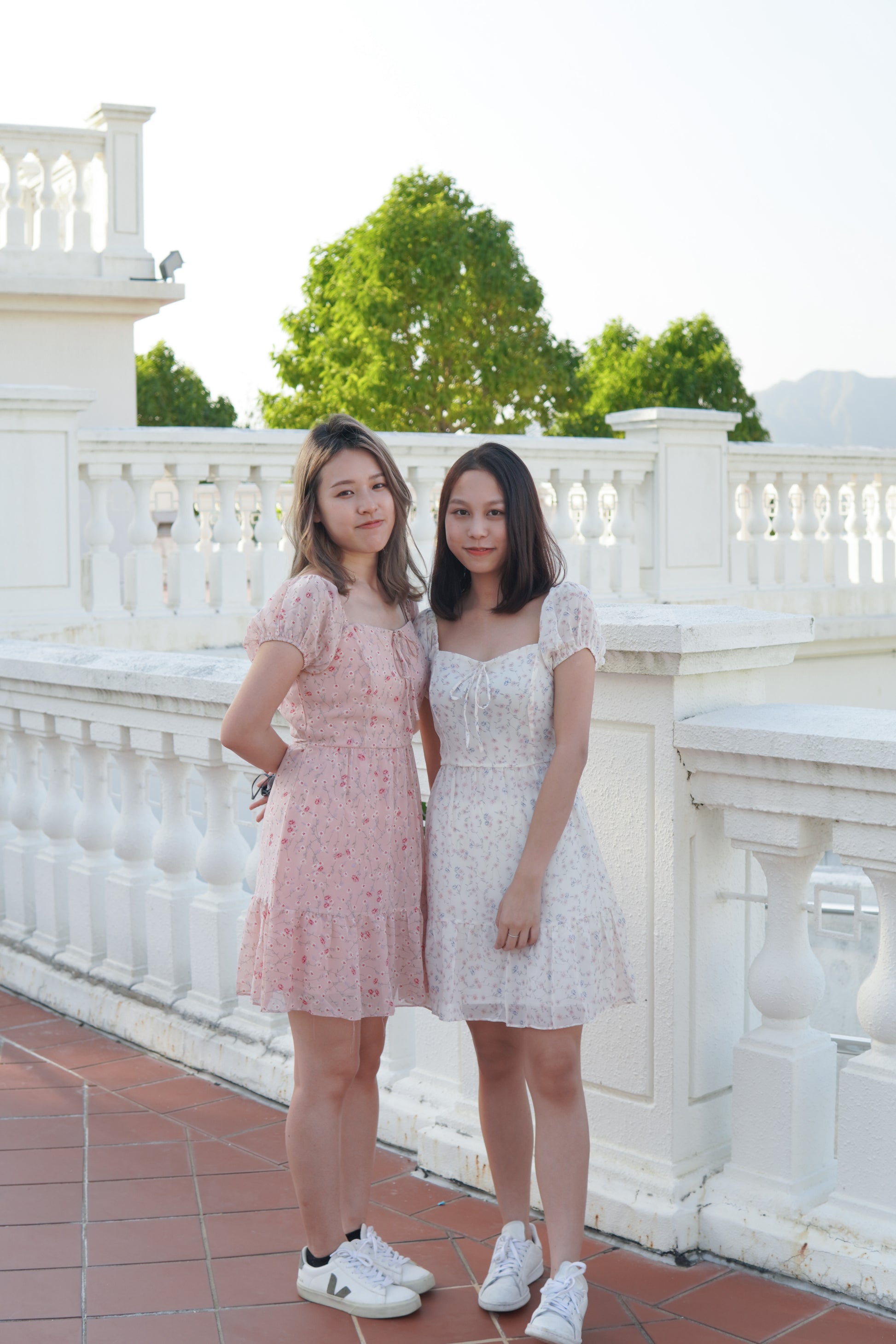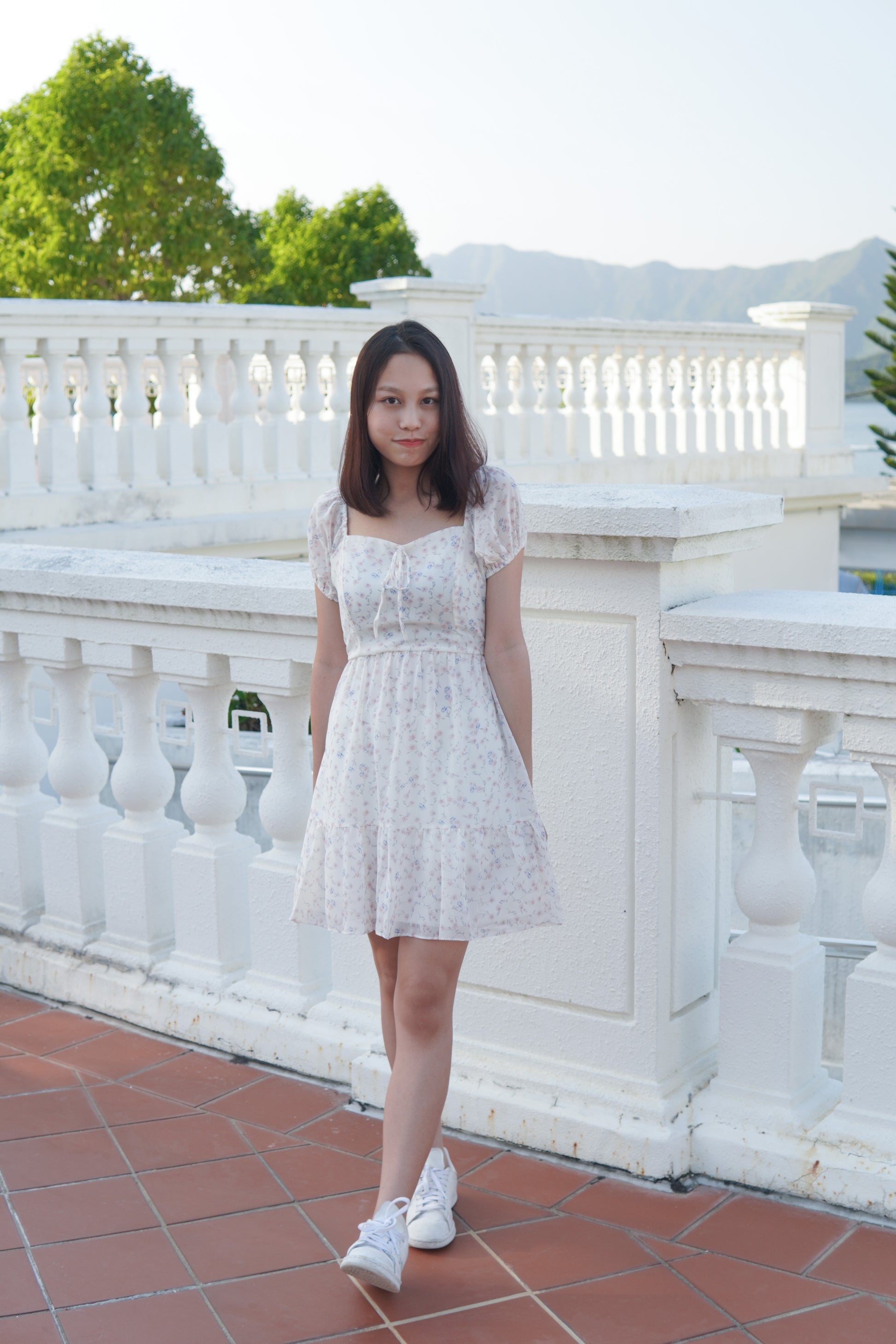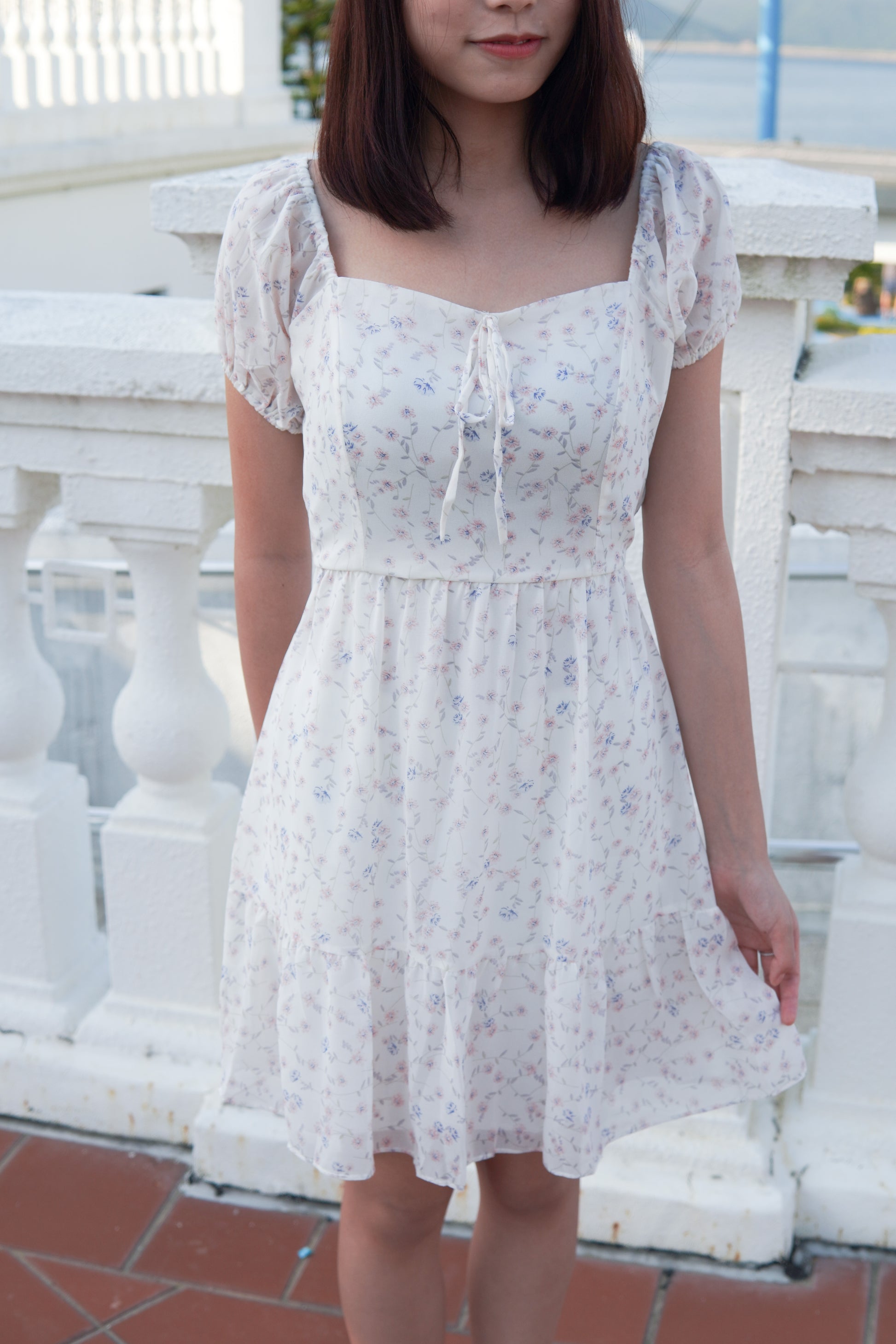 兩着泡泡袖粉紅拼色碎花雪紡OPS | 奶油白 (現貨)
