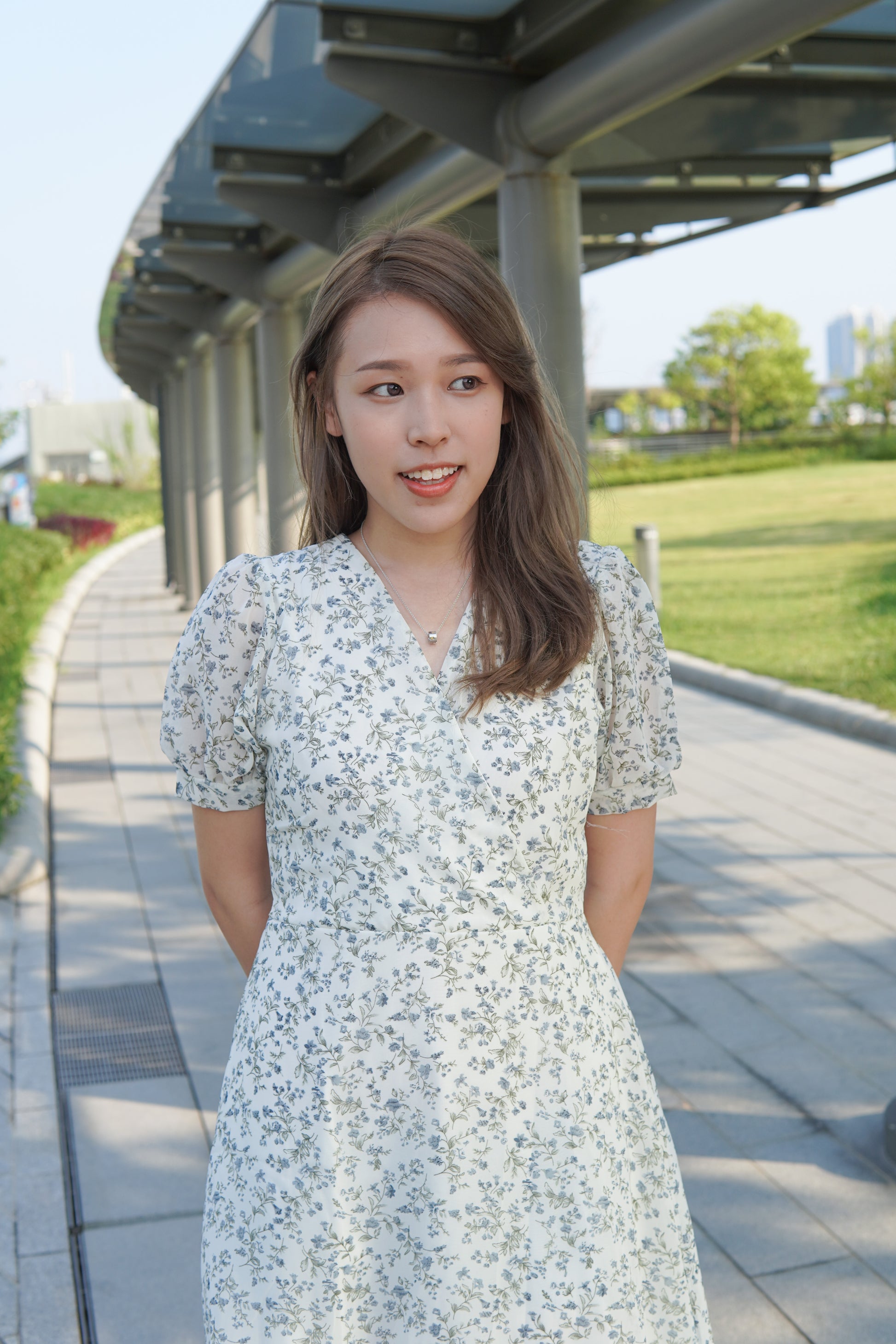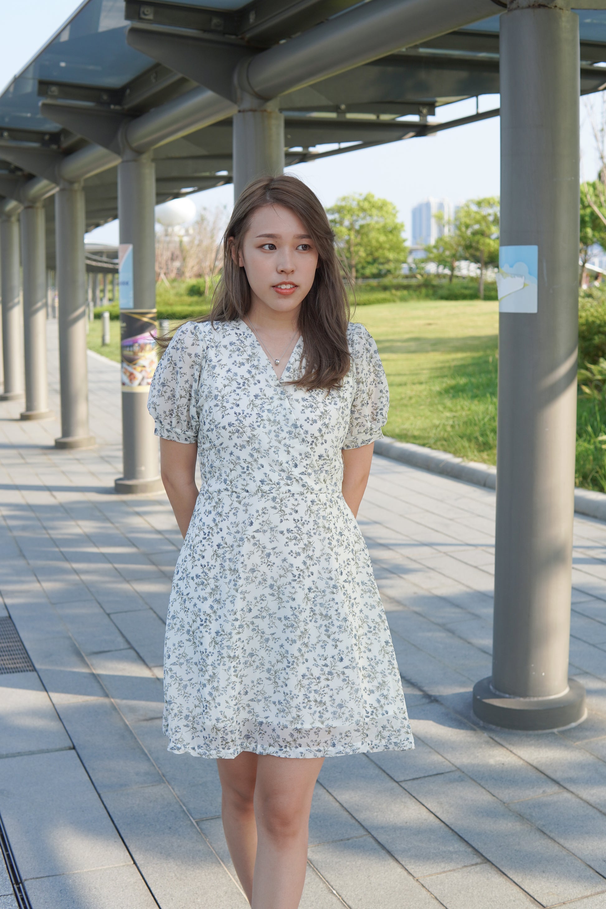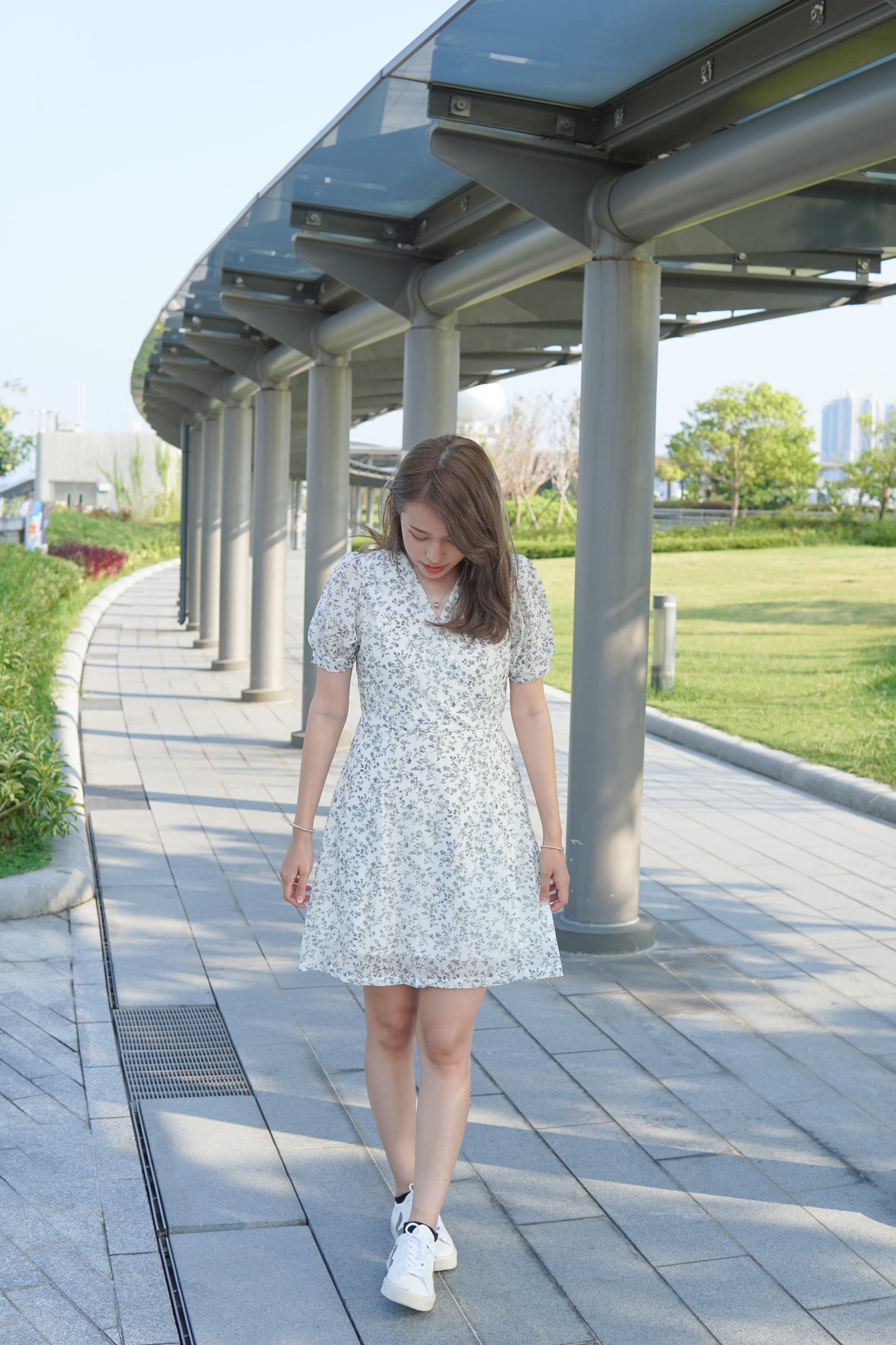 公主袖墨藍花雪紡OPS | 象牙白 (現貨)