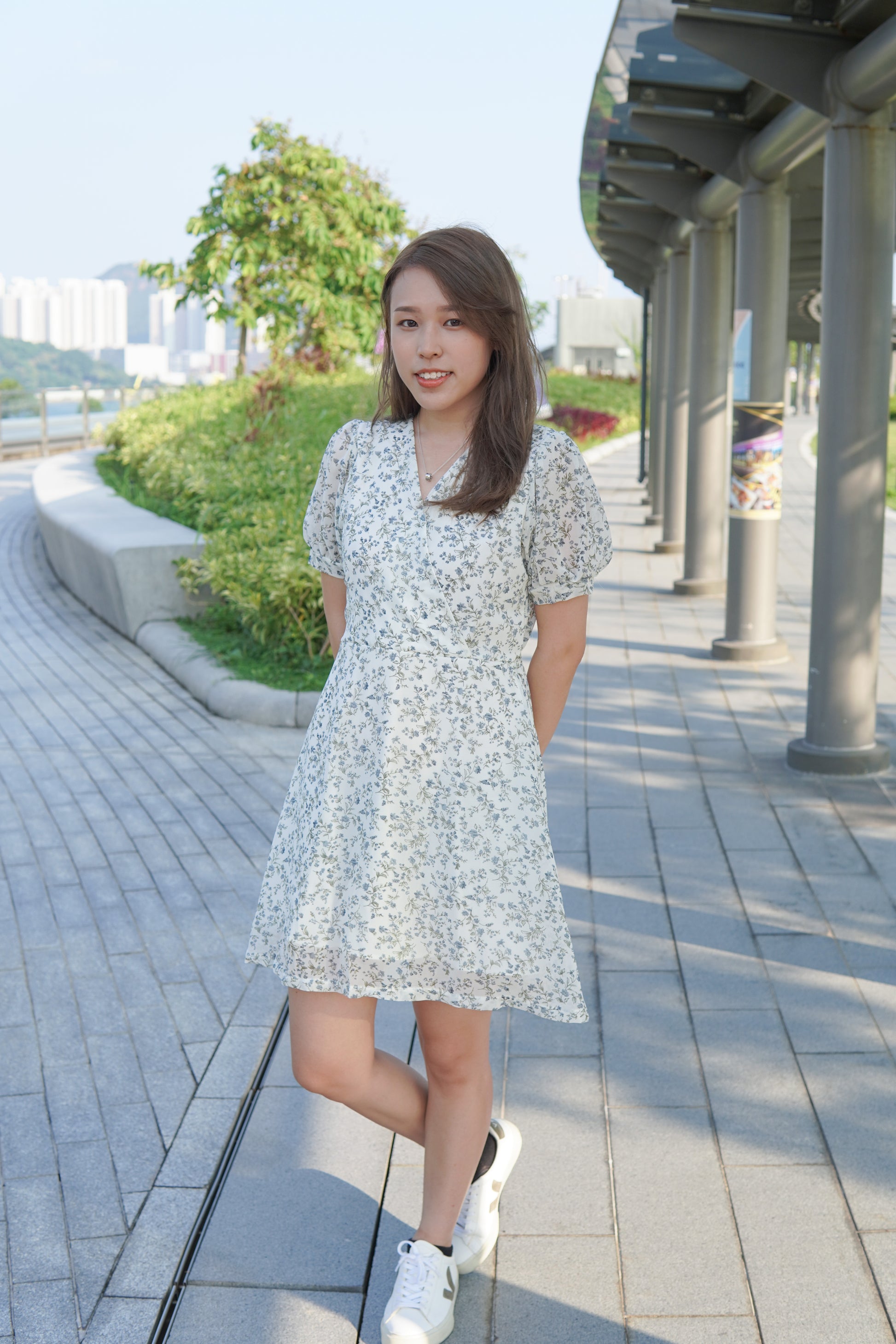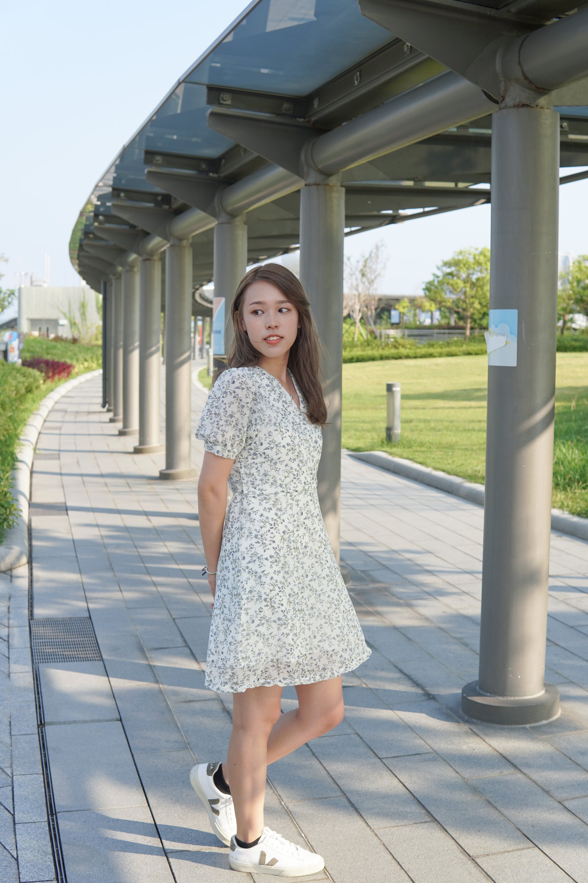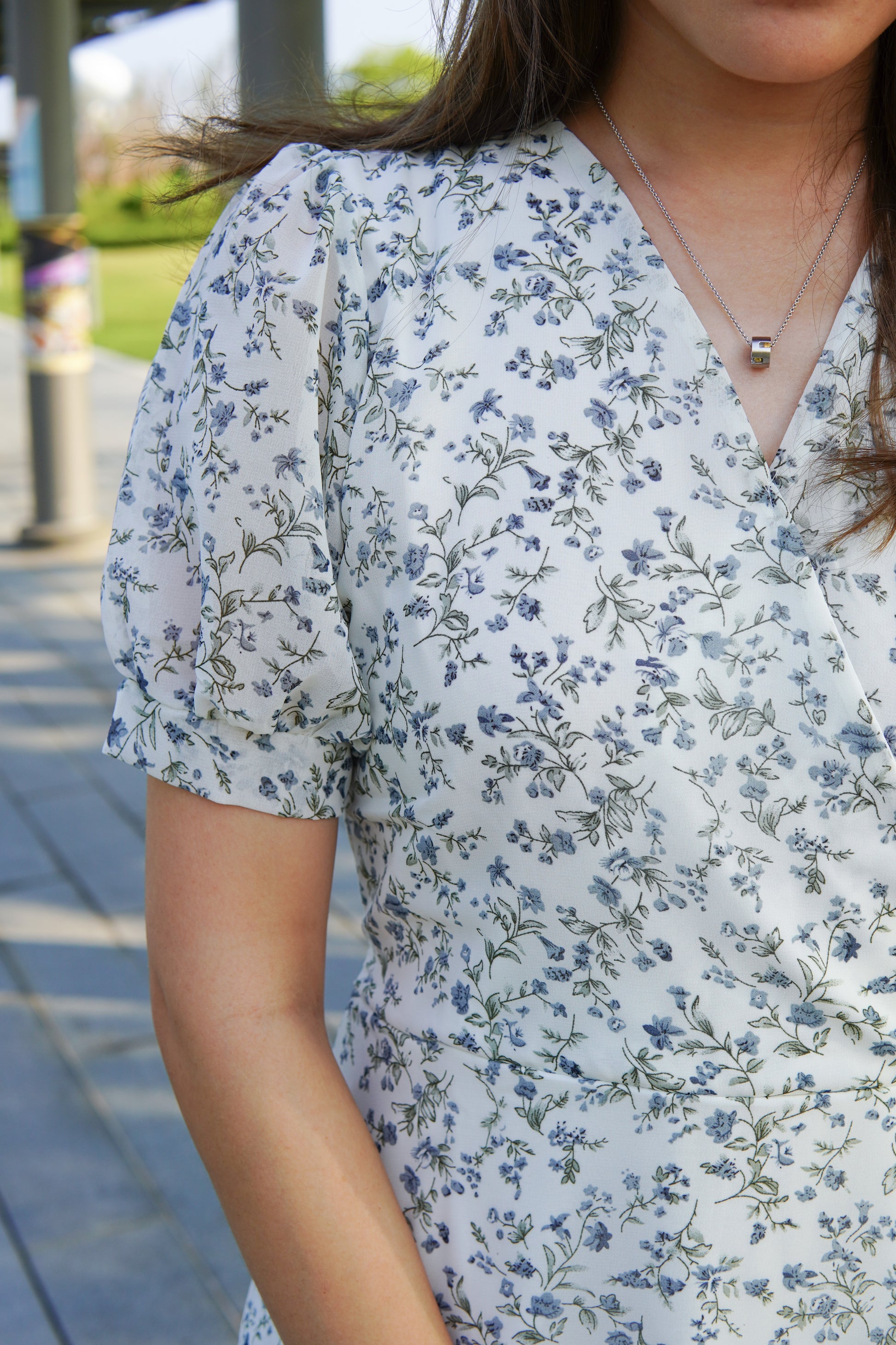 公主袖墨藍花雪紡OPS | 象牙白 (現貨)
