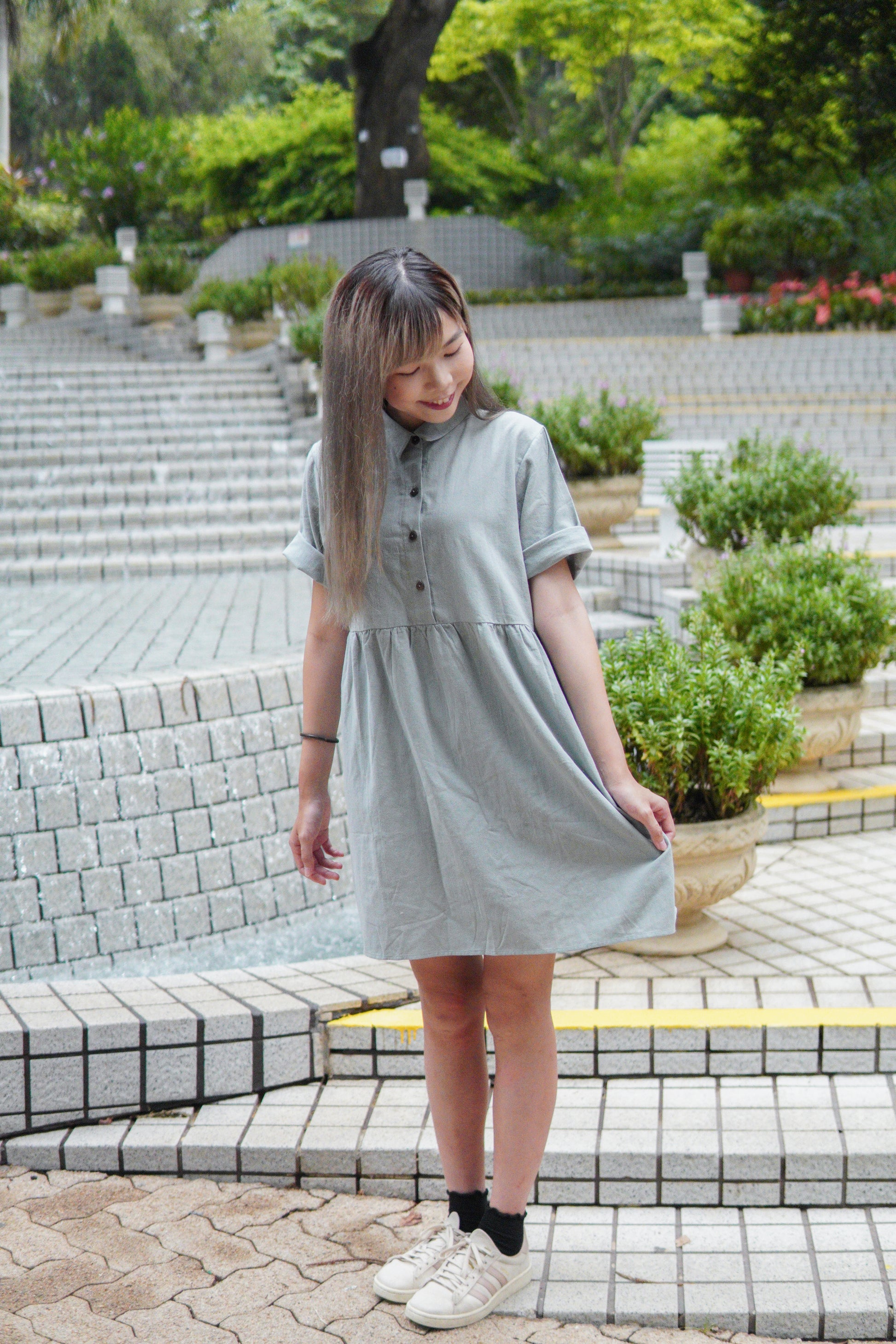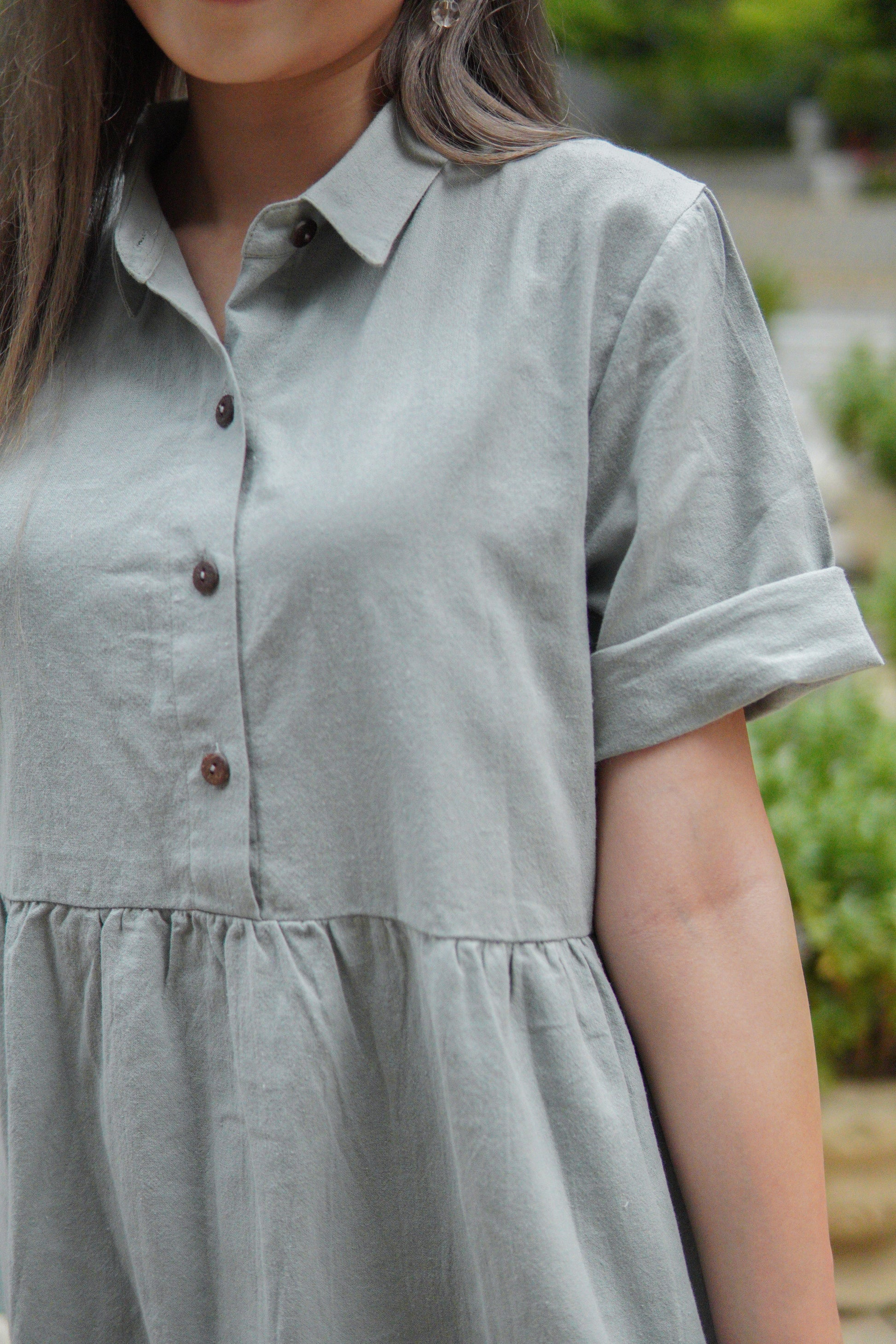 反領半鈕扣娃娃OPS | 霧藍綠 (現貨)