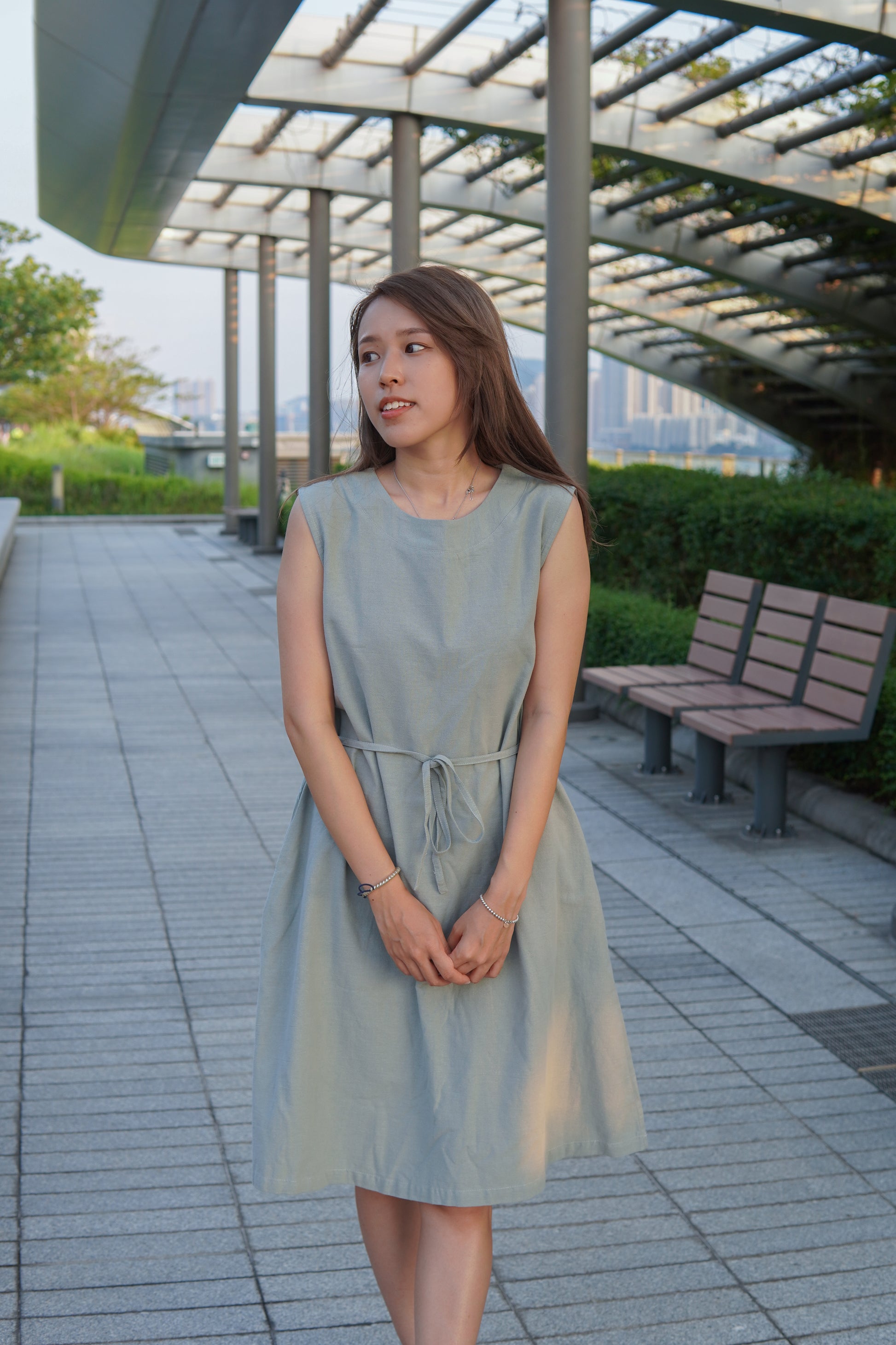 圓領設計 配備幼身腰帶