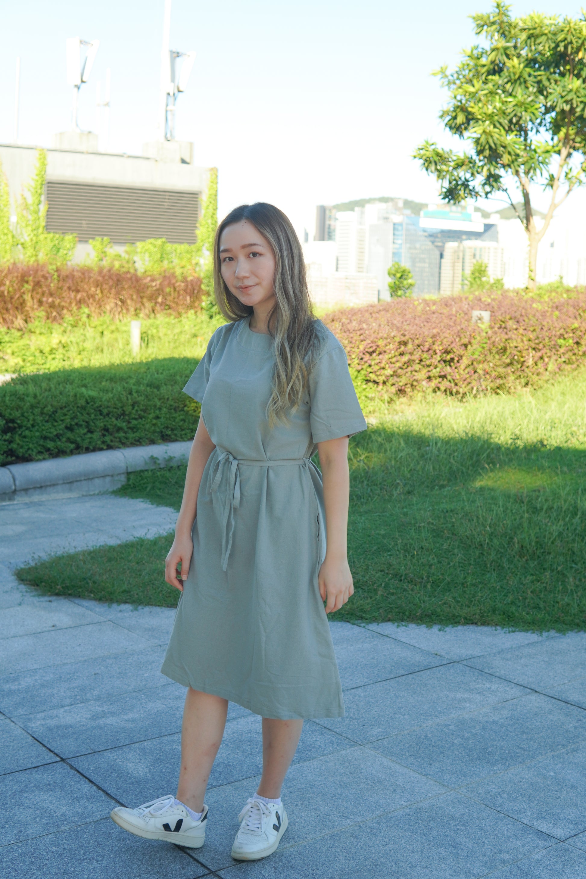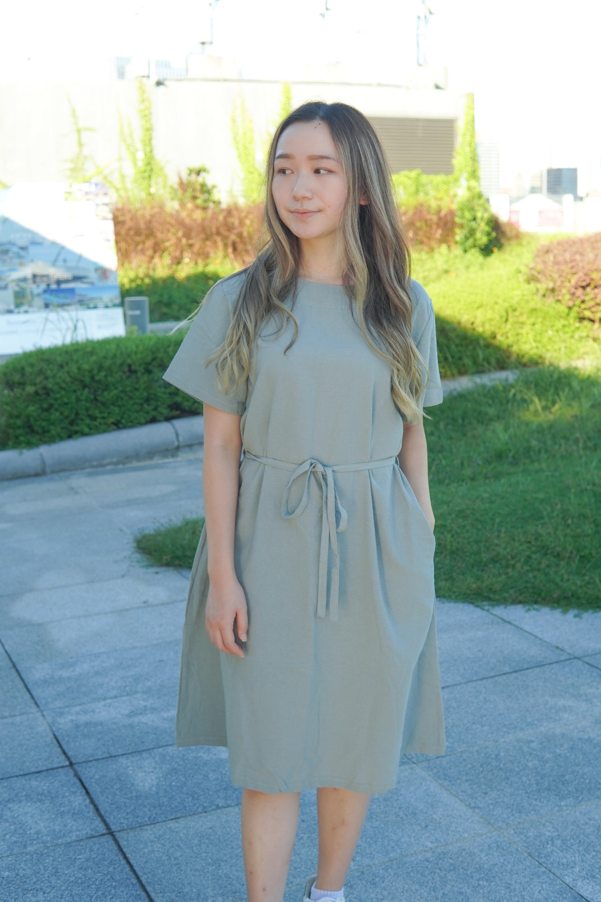 圓領設計 配備幼身腰帶