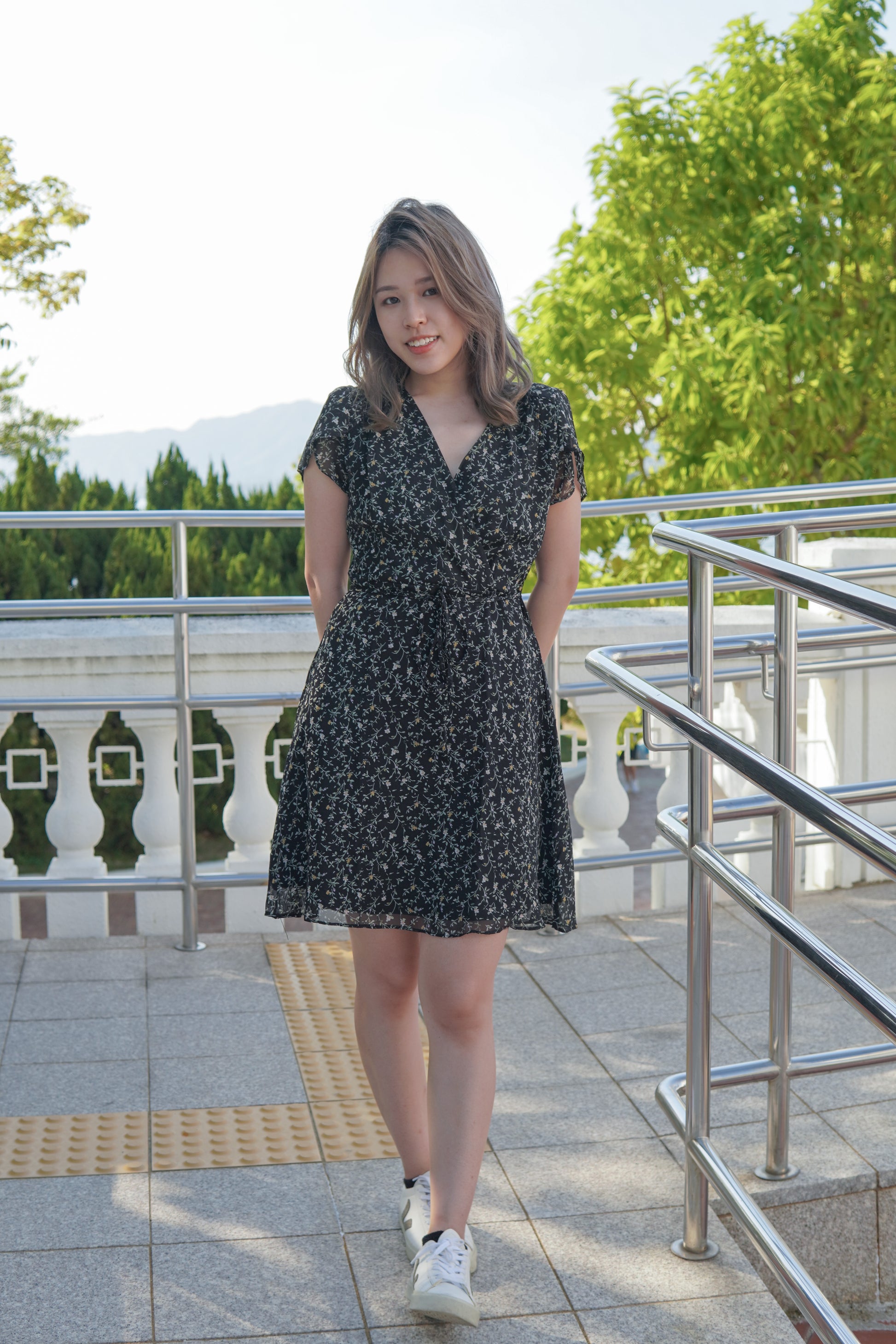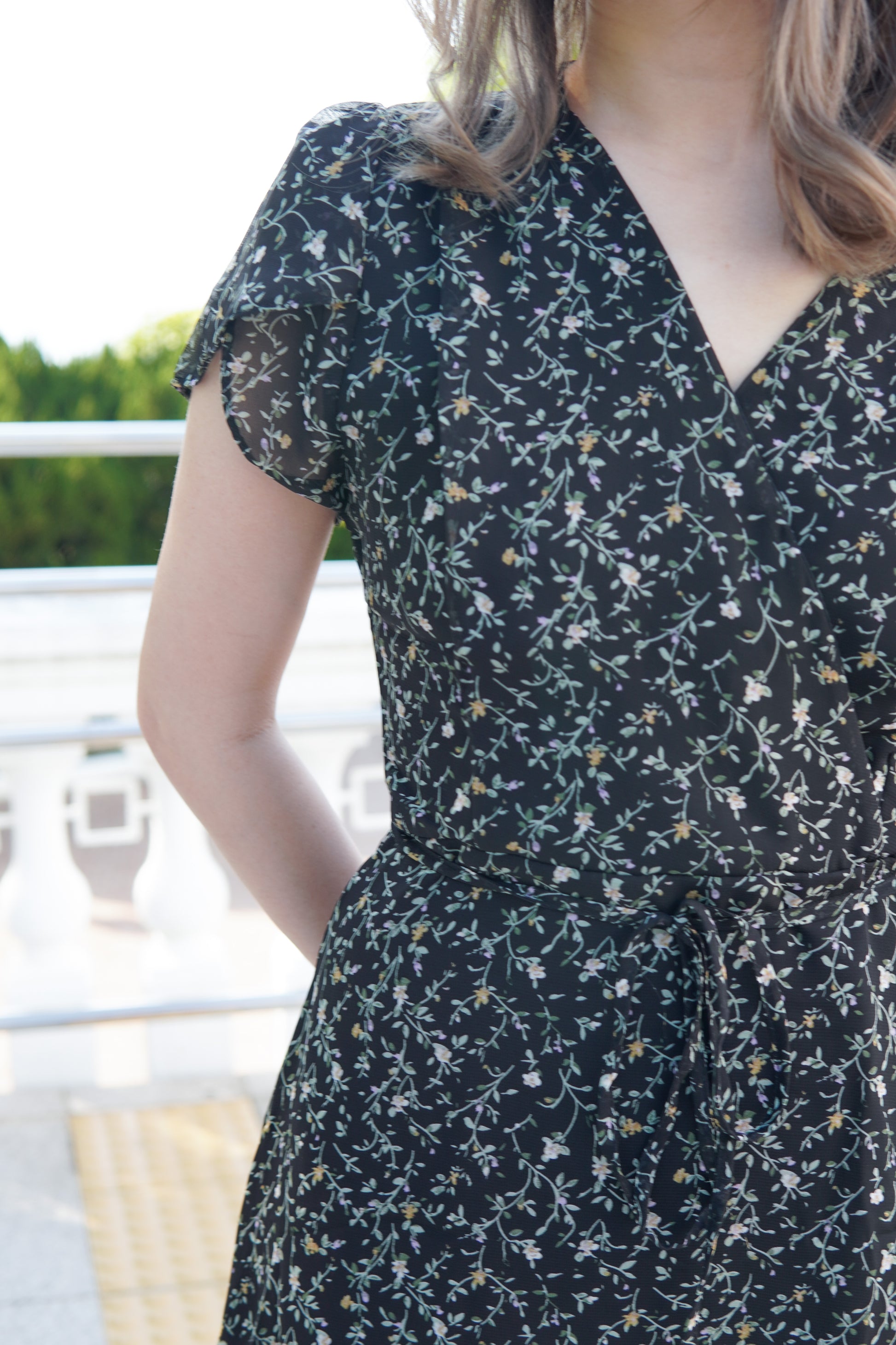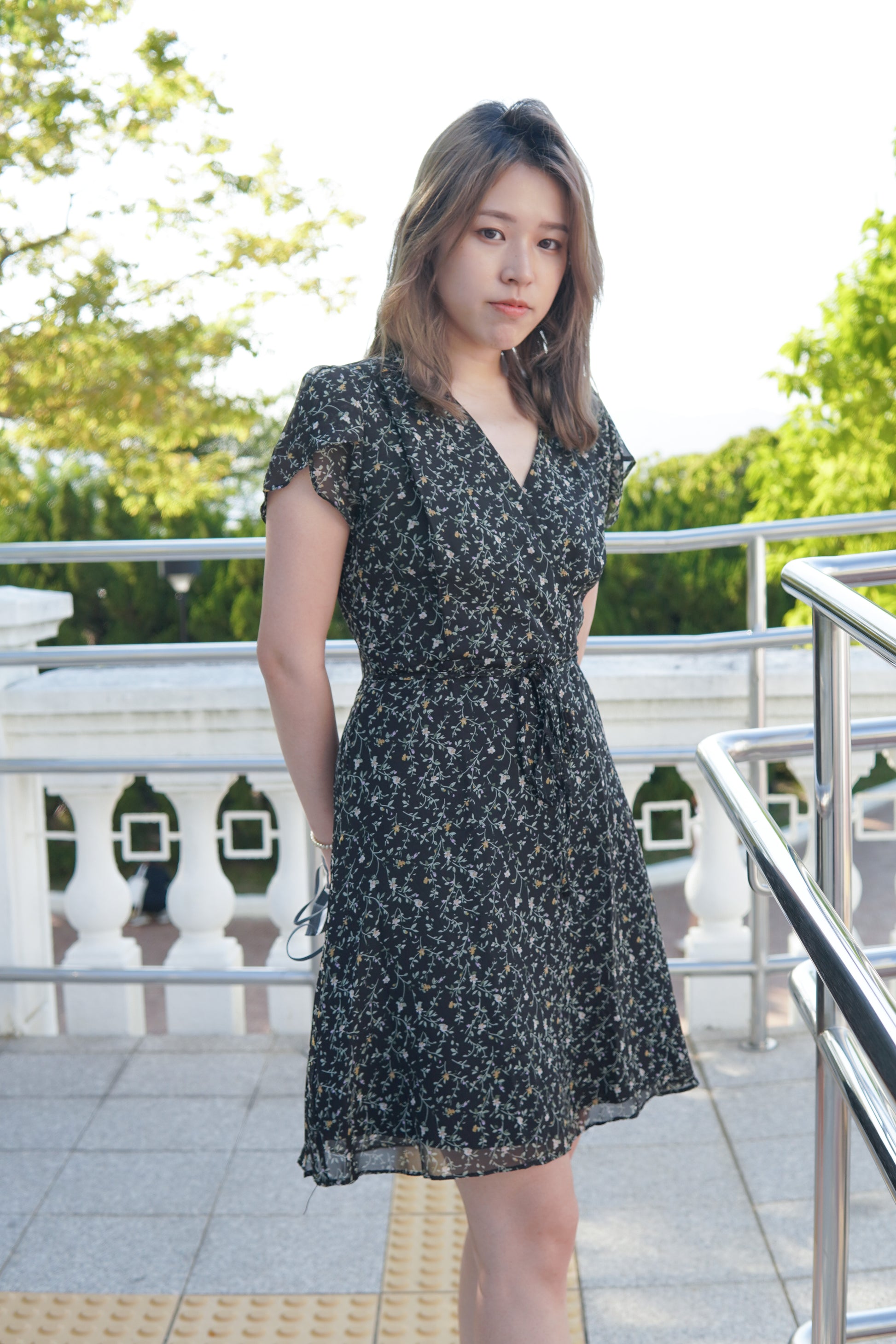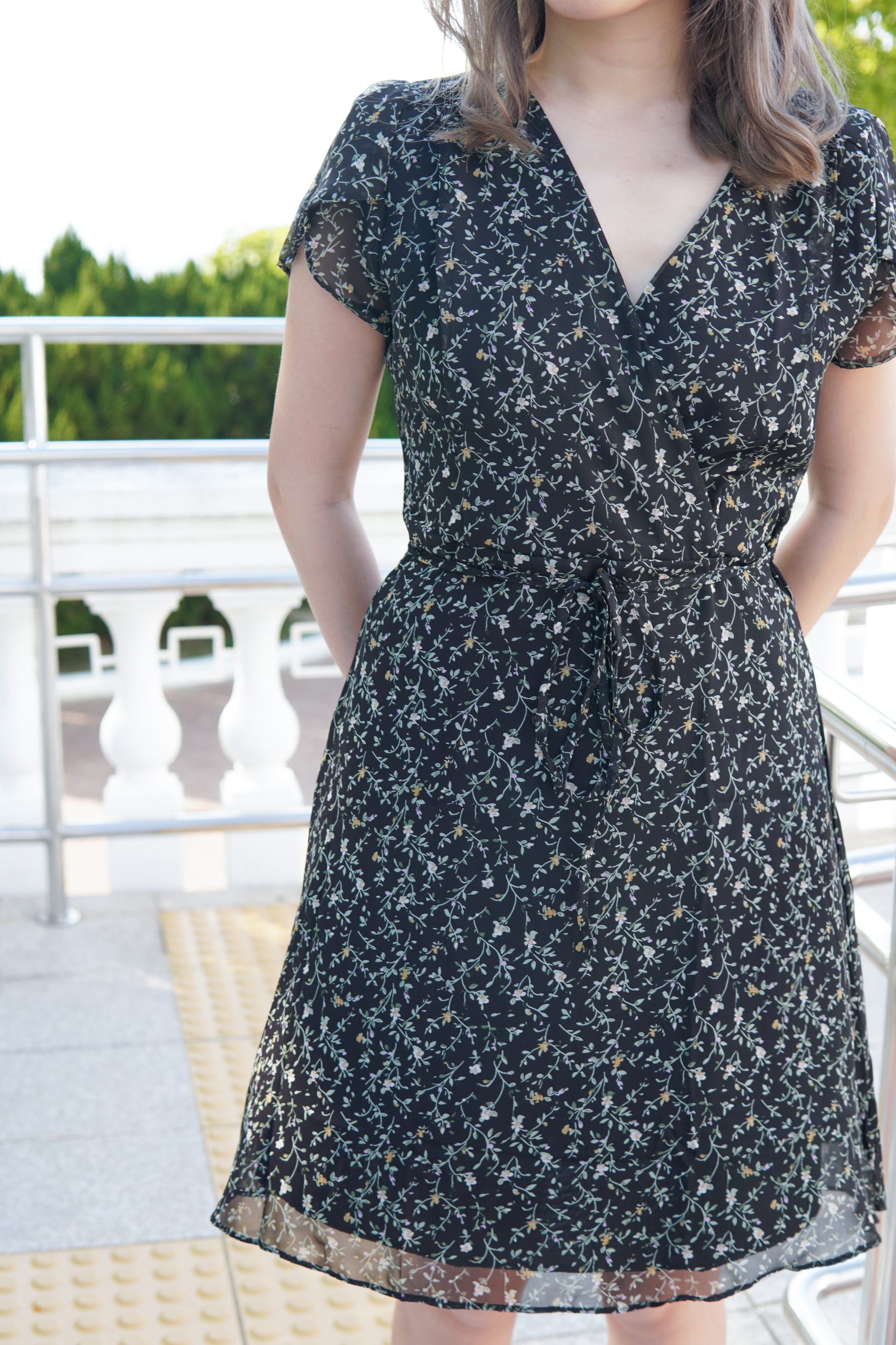 花瓣袖夏日碎花雪紡OPS | 黑 (現貨)