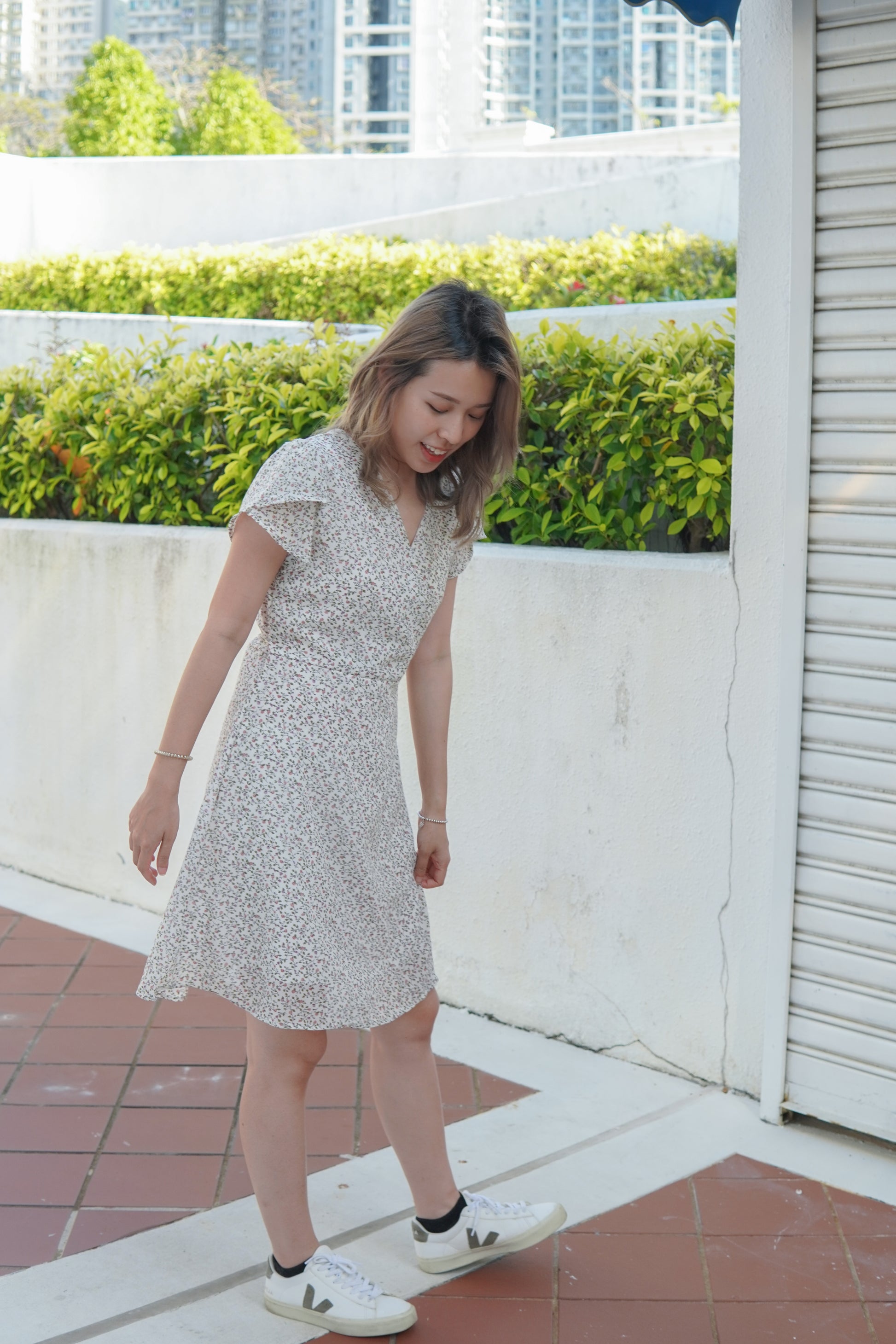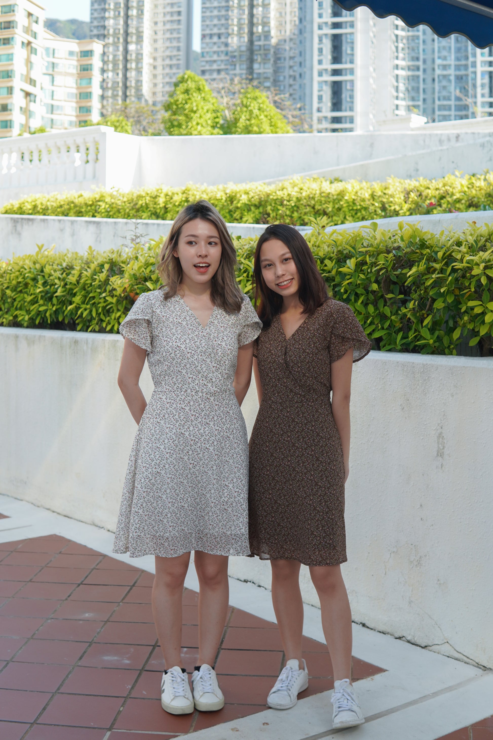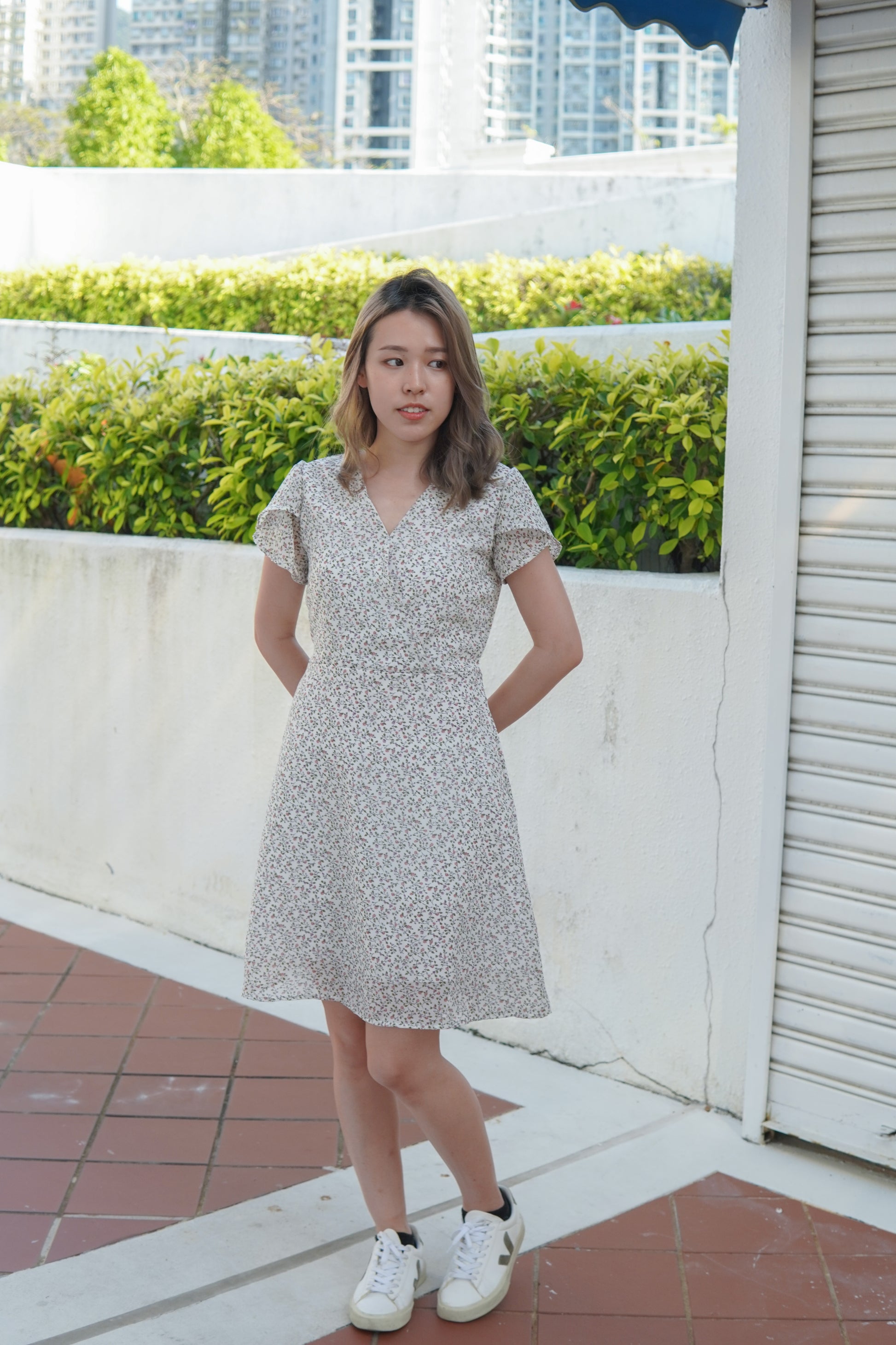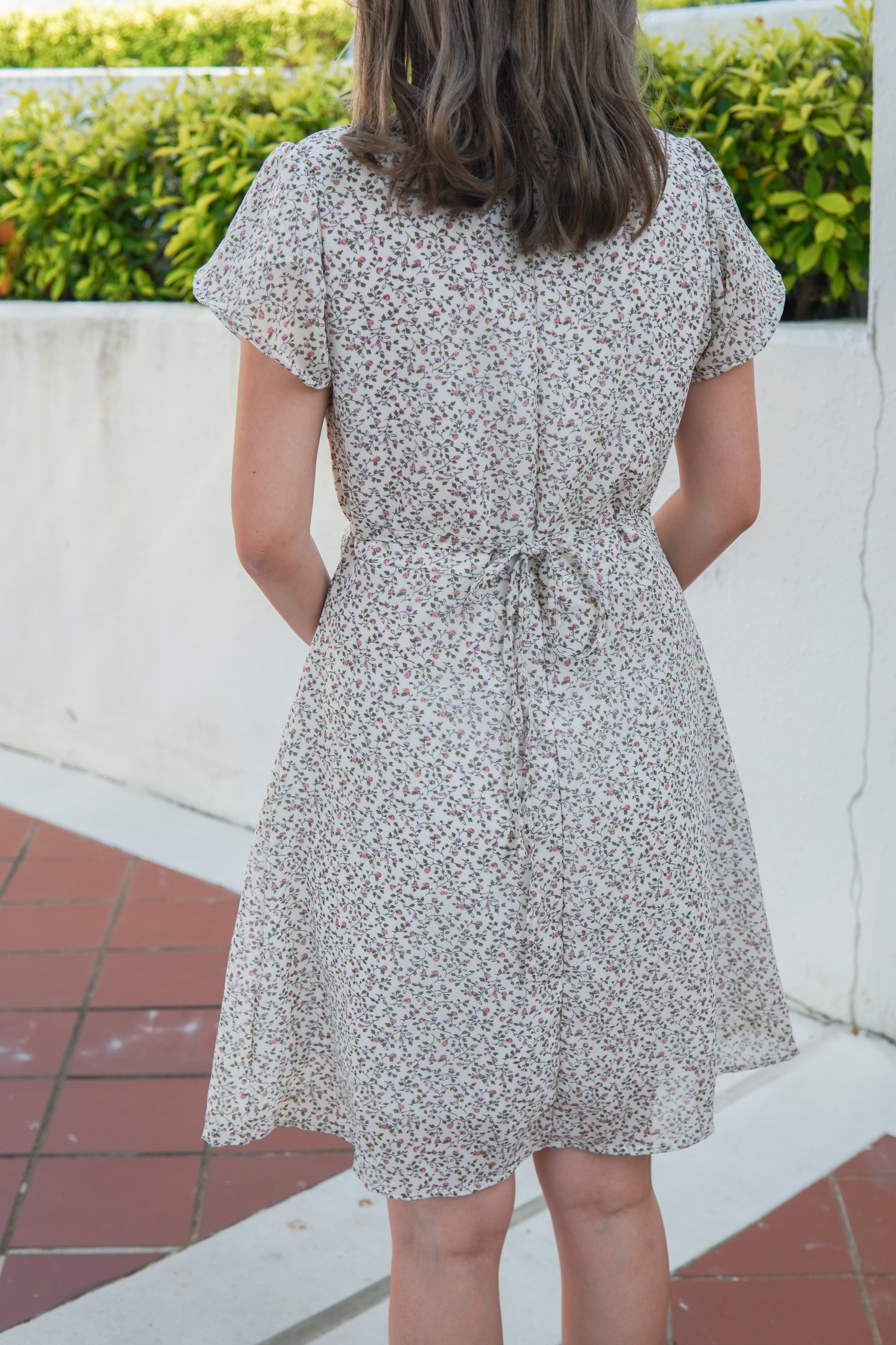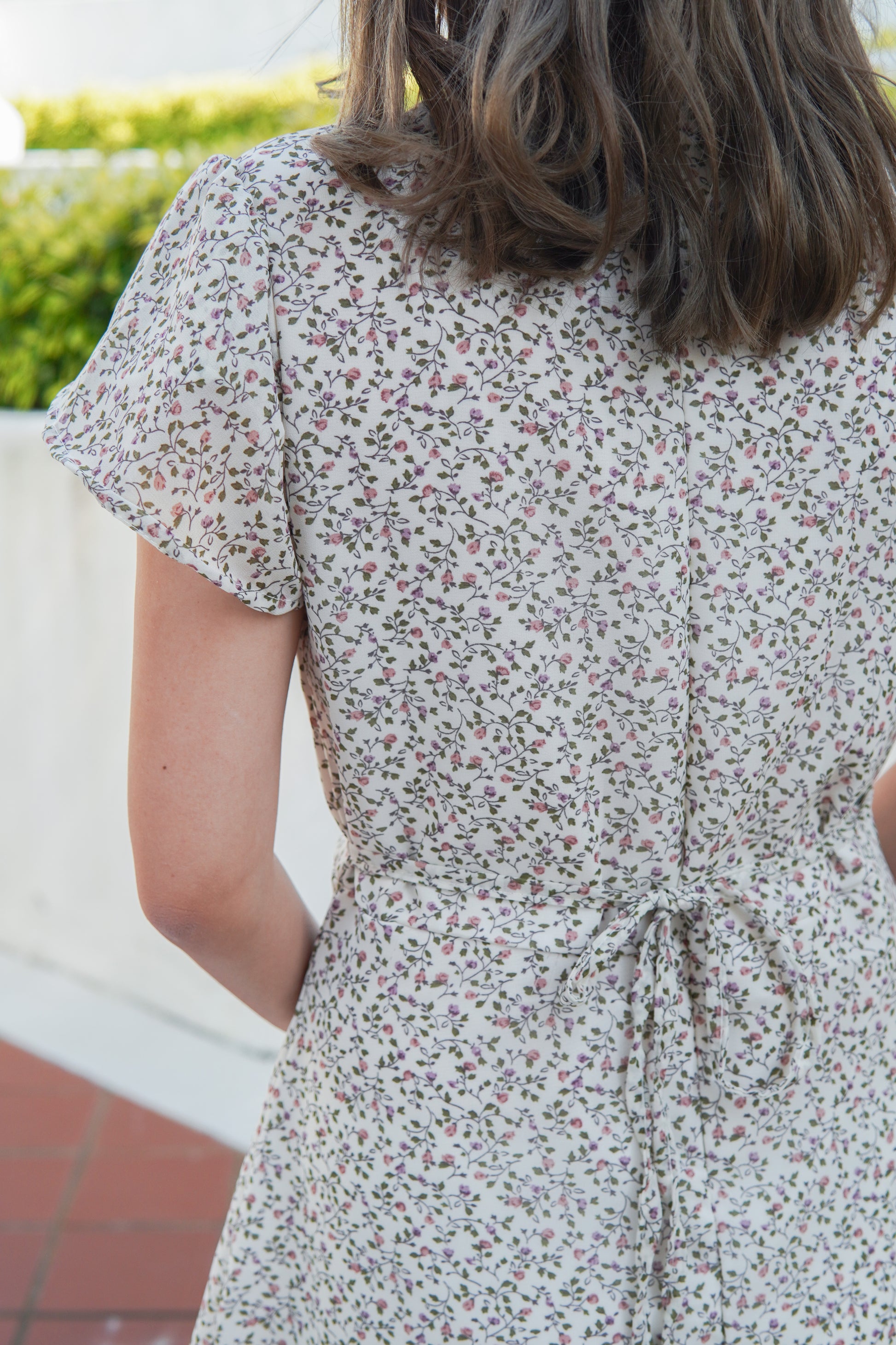 花瓣袖粉紫碎花雪紡OPS | 淺白 (現貨)
