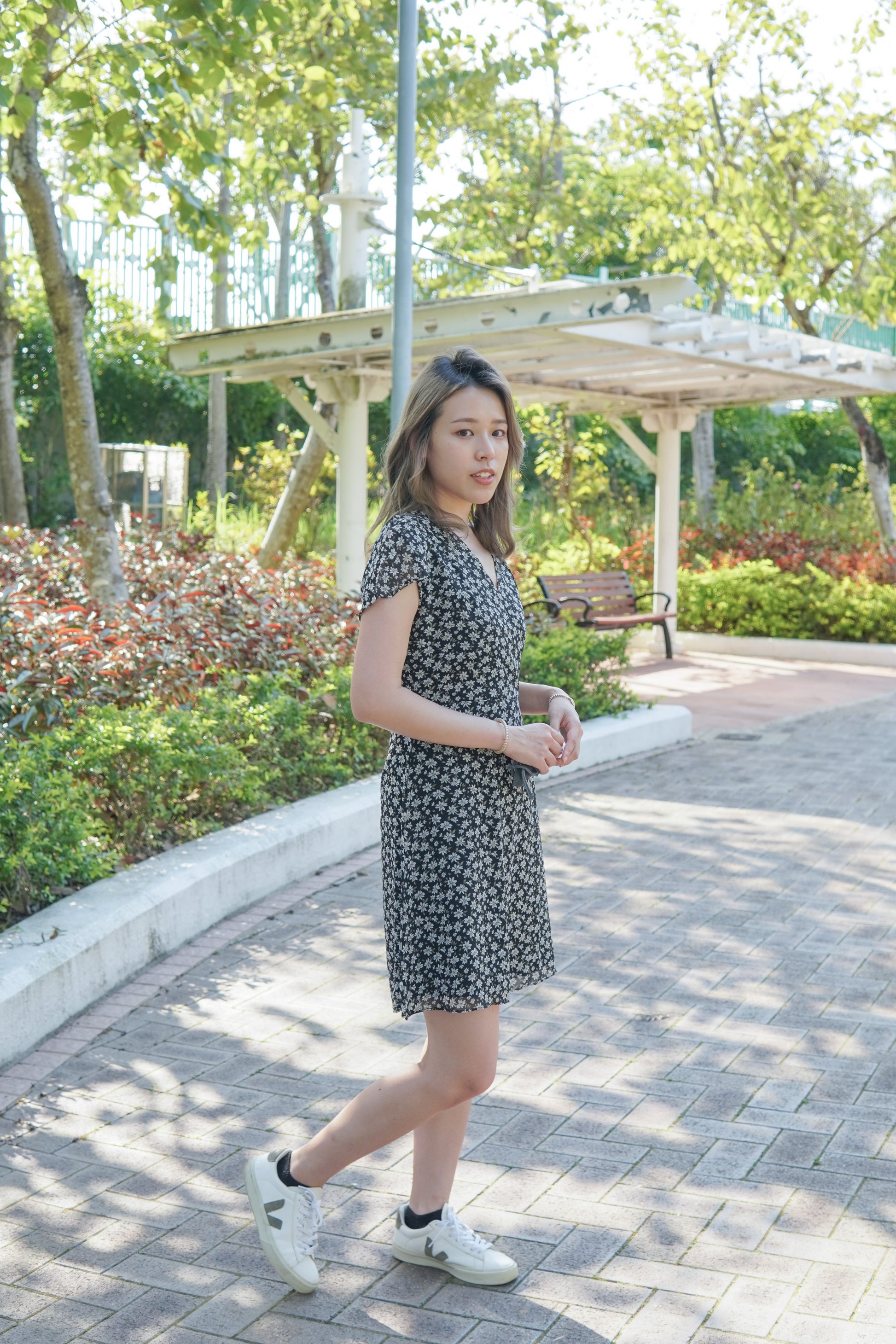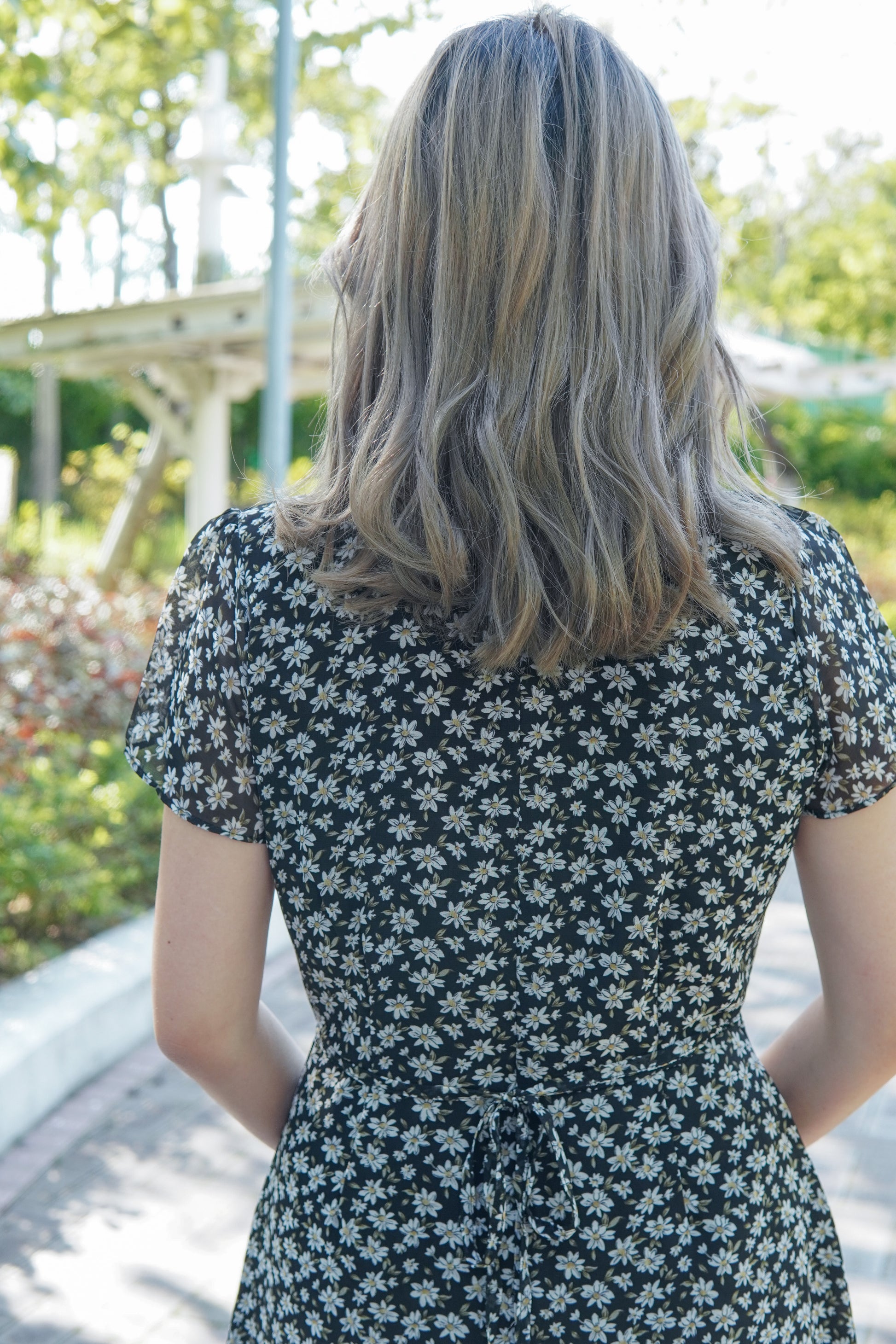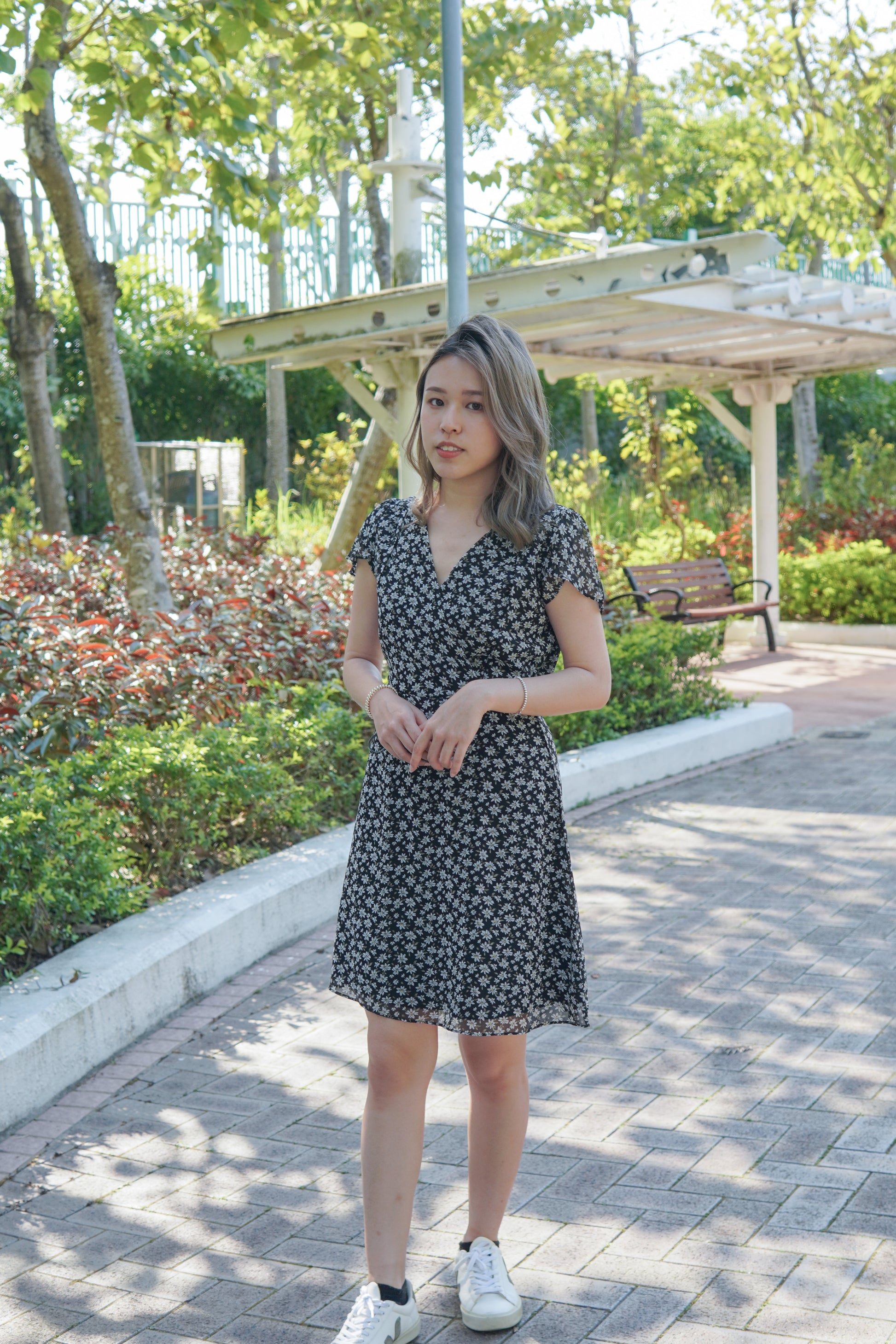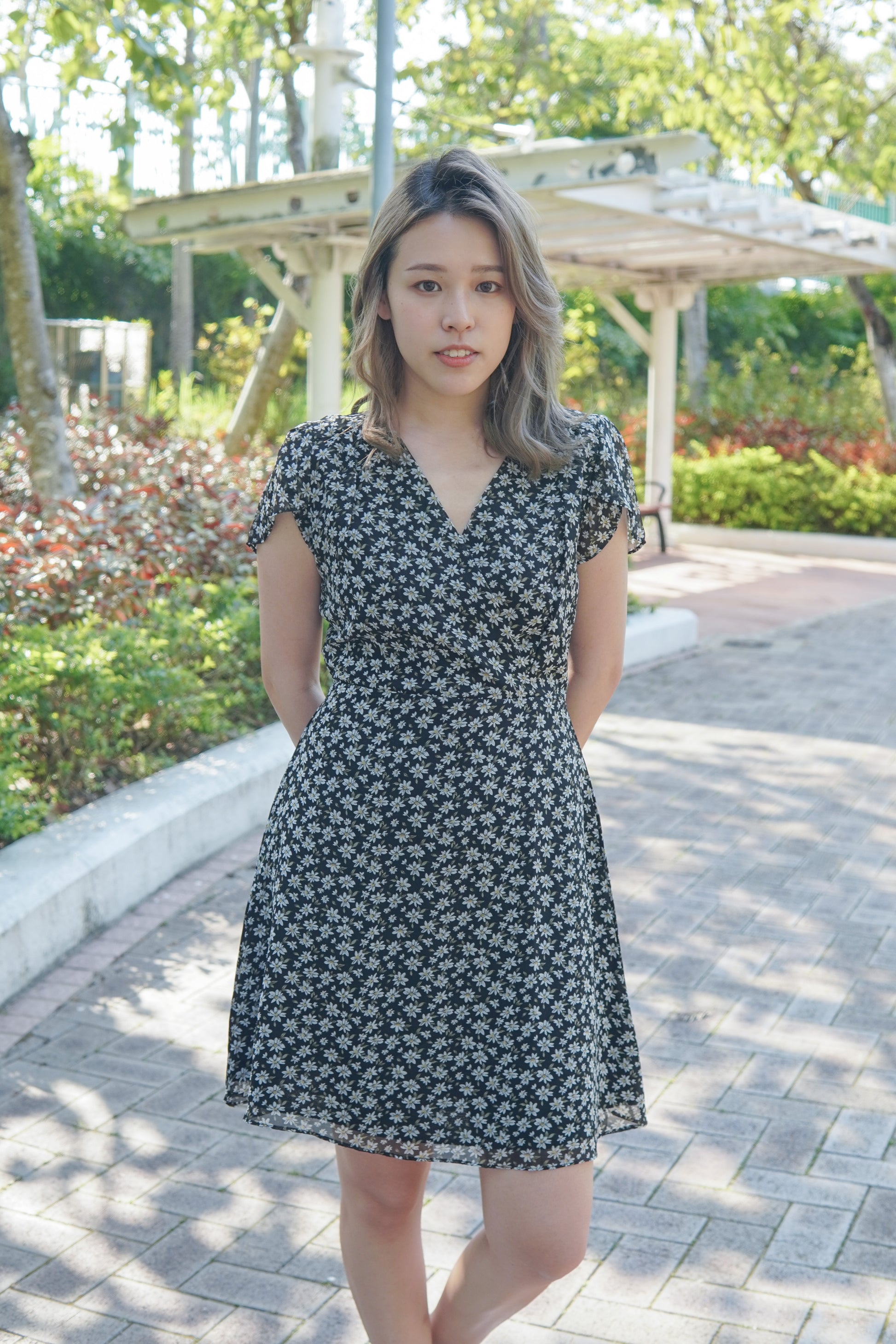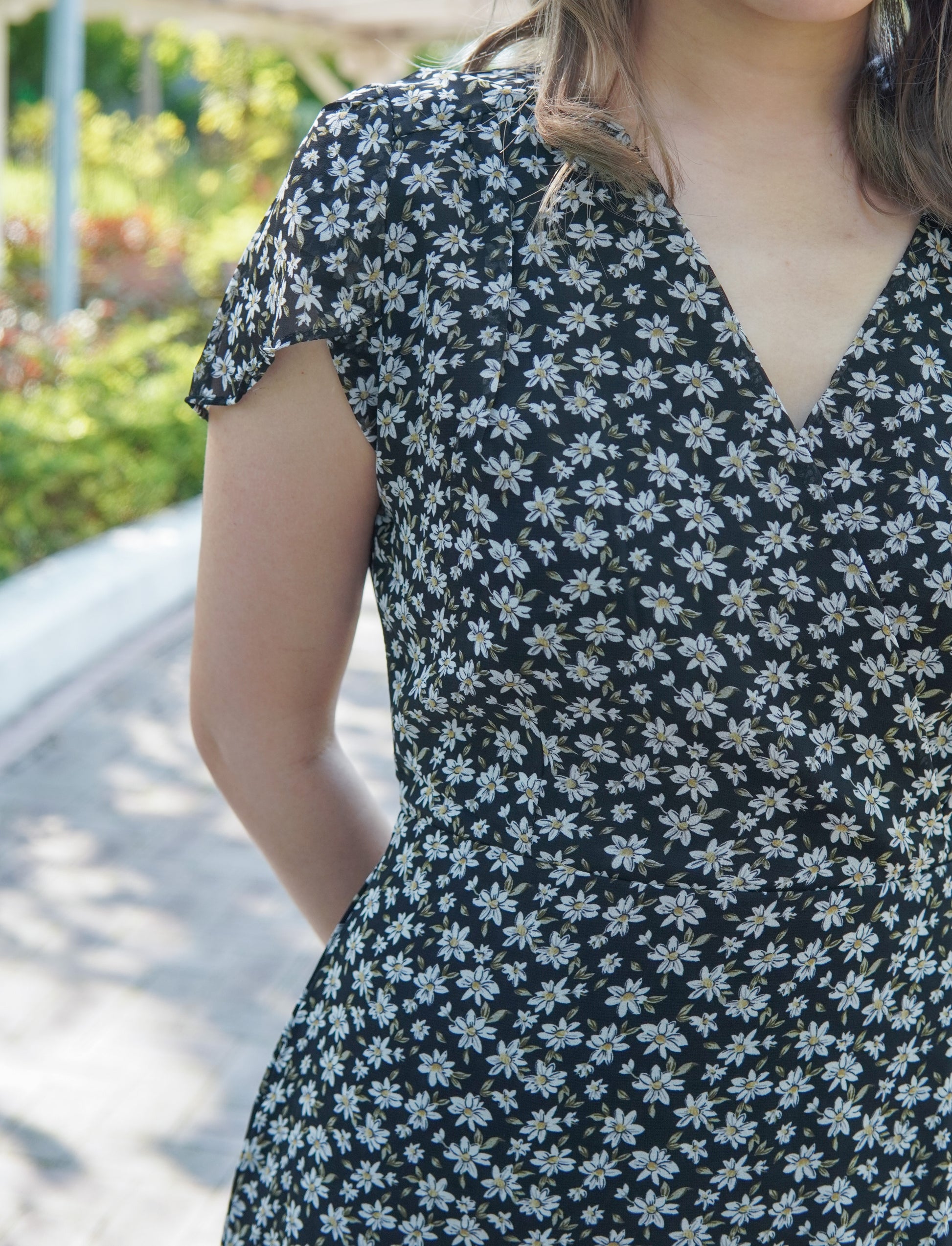 花瓣袖雛菊雪紡OPS | 黑 (現貨)