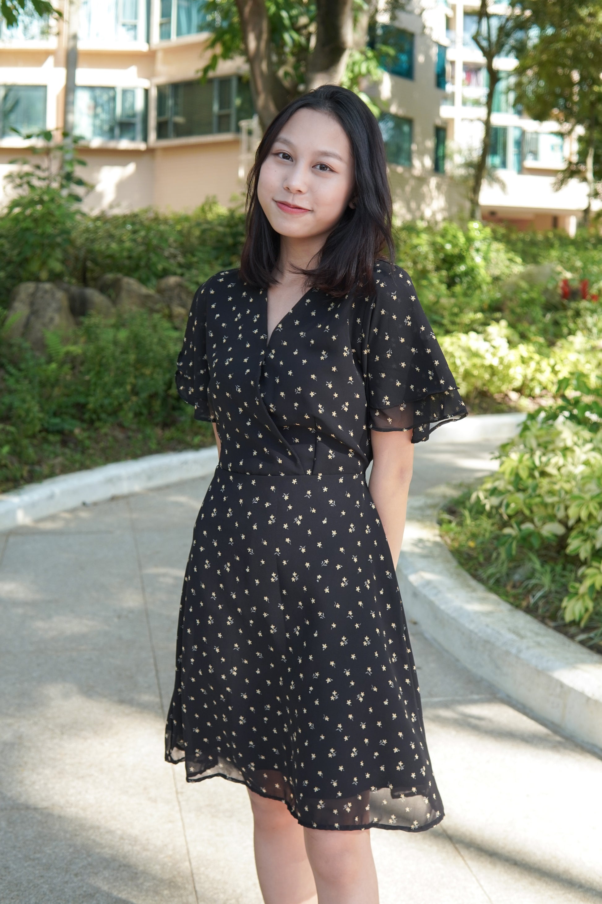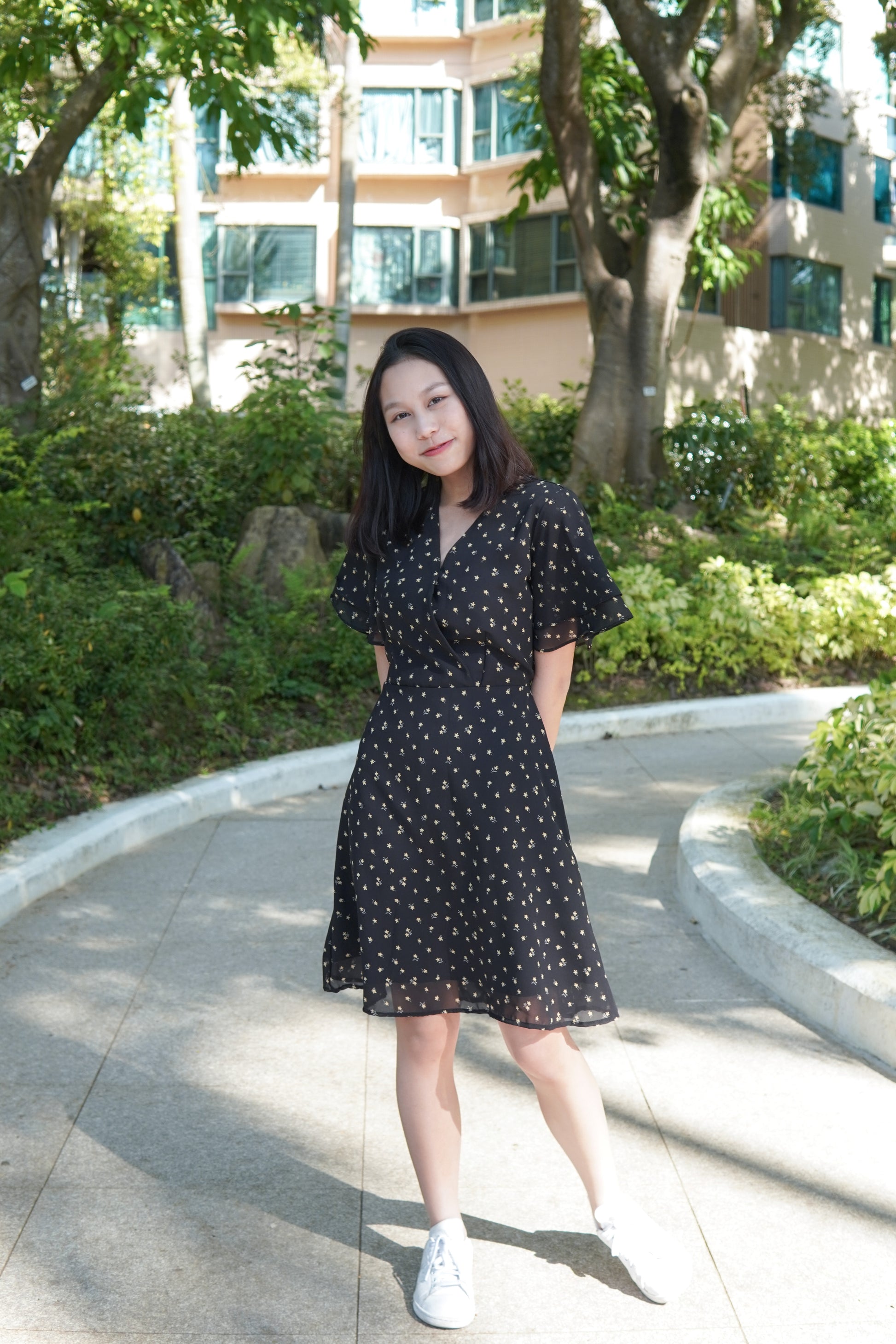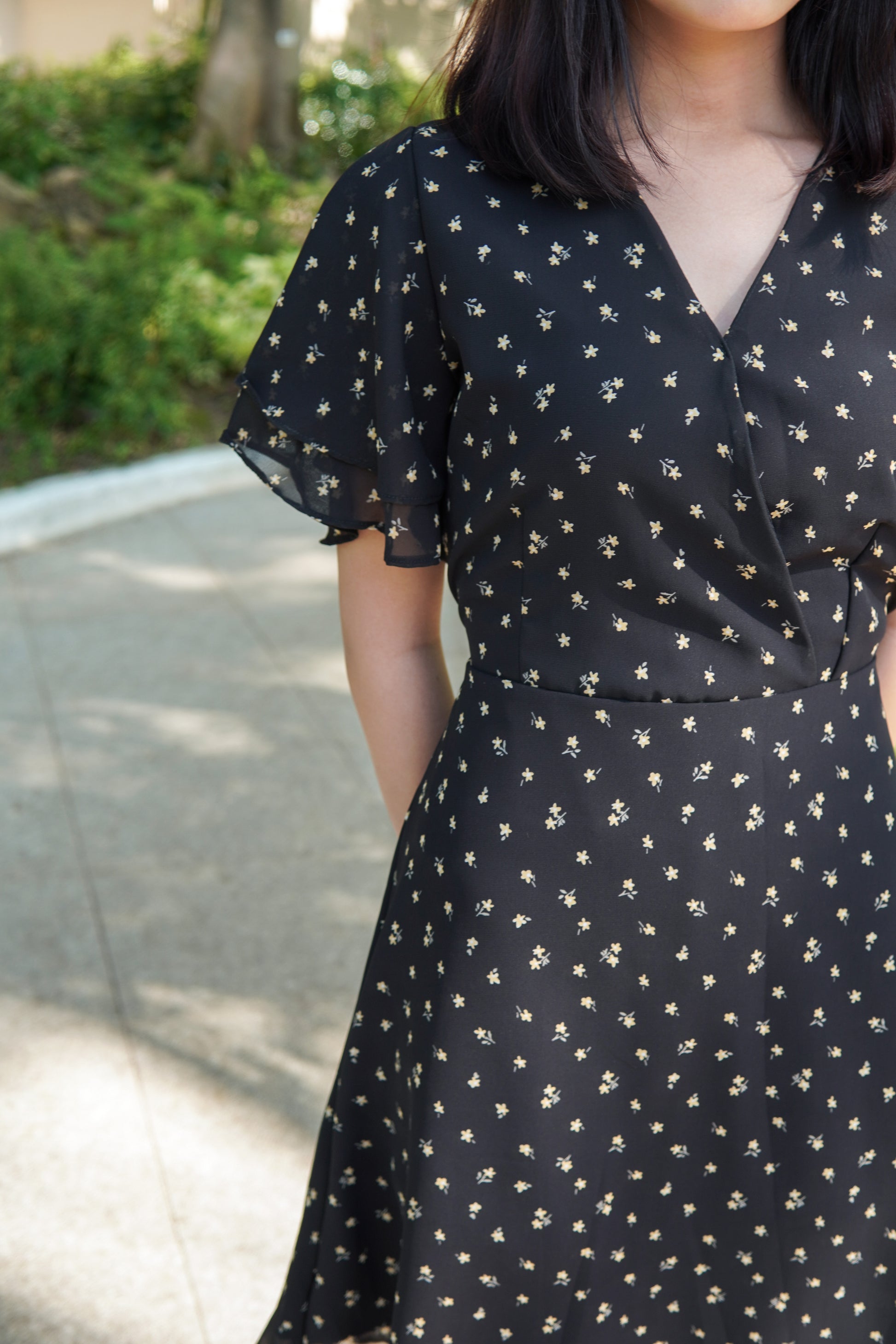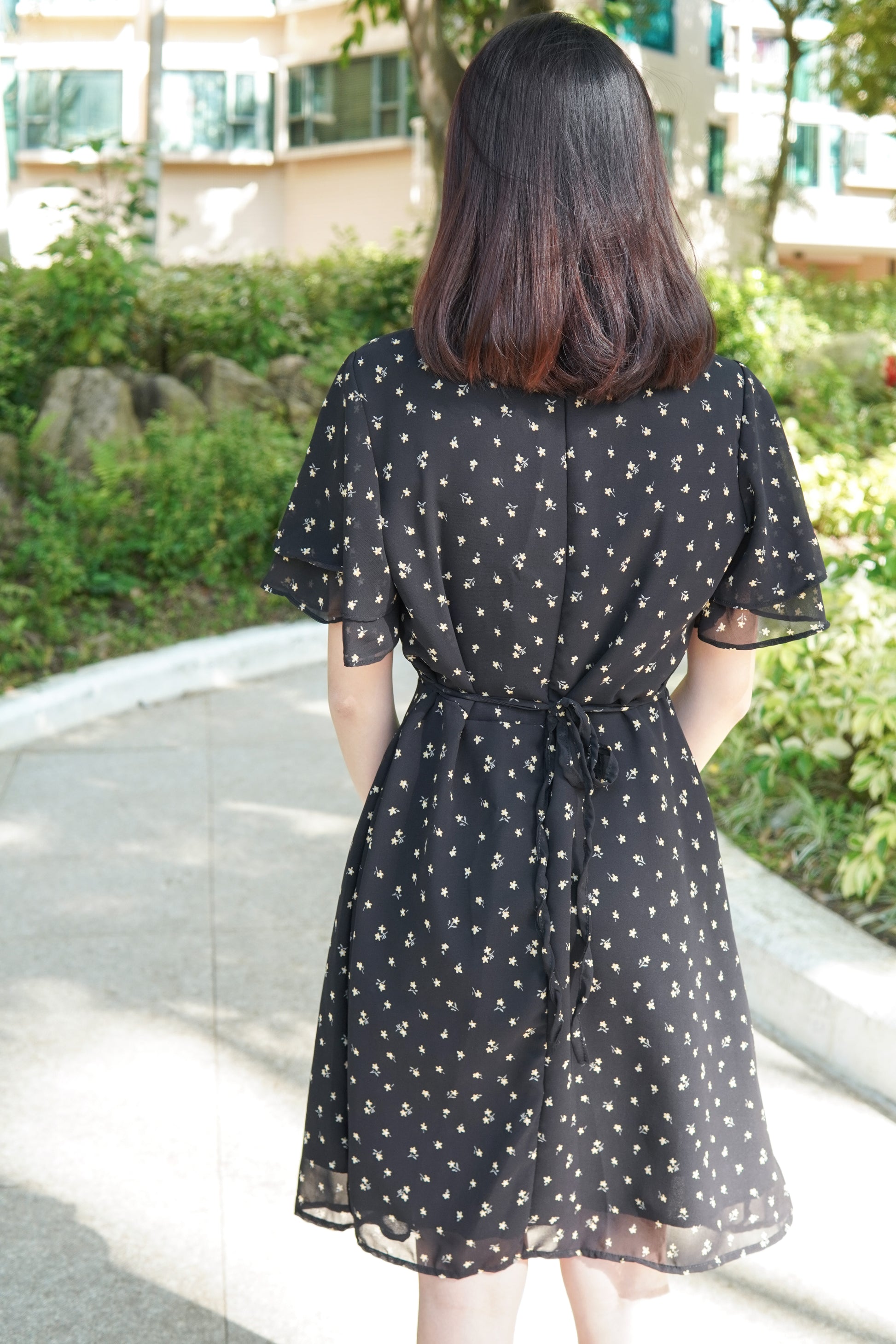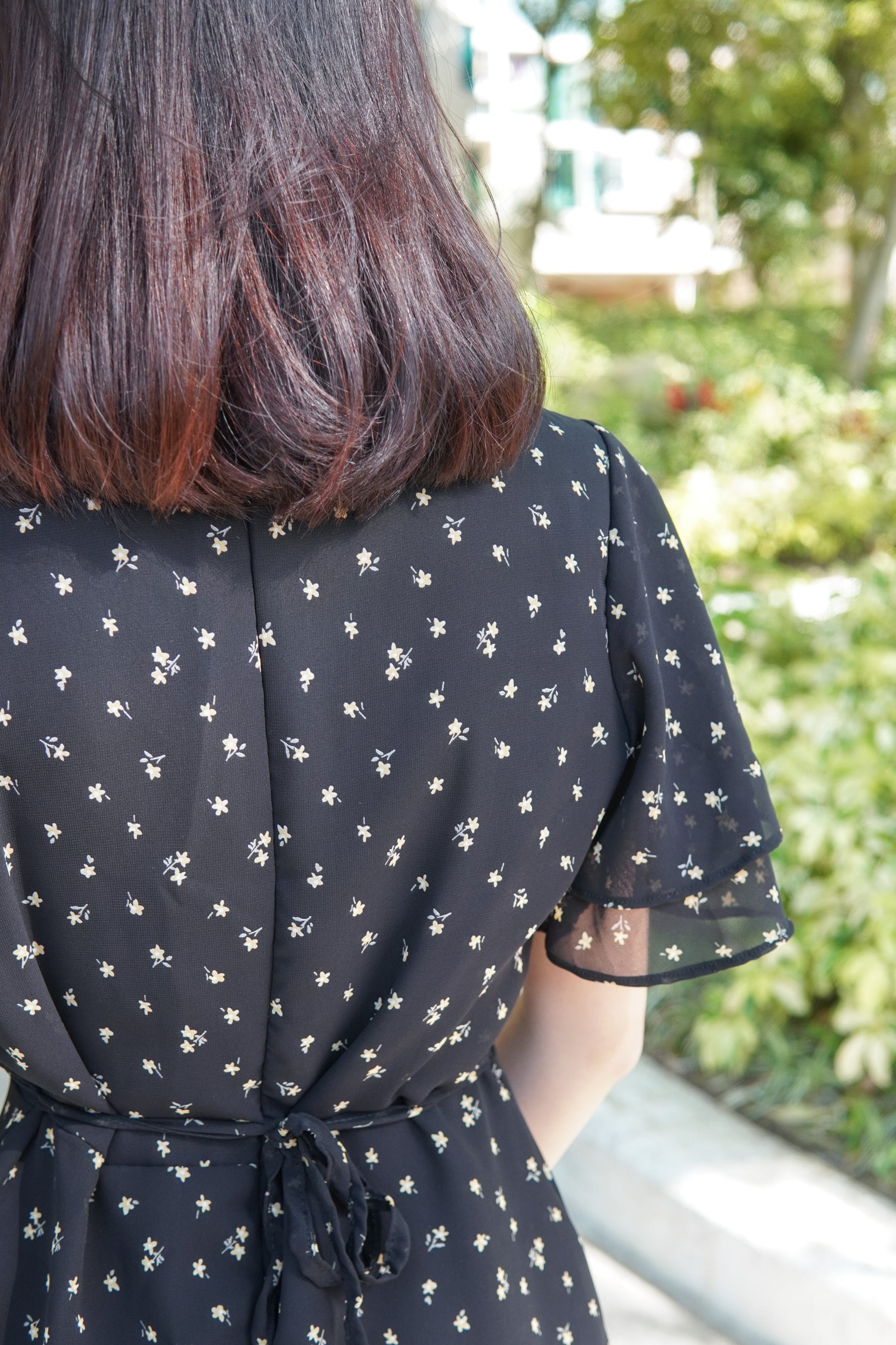 雙層袖小橘花雪紡OPS | 黑 (現貨)