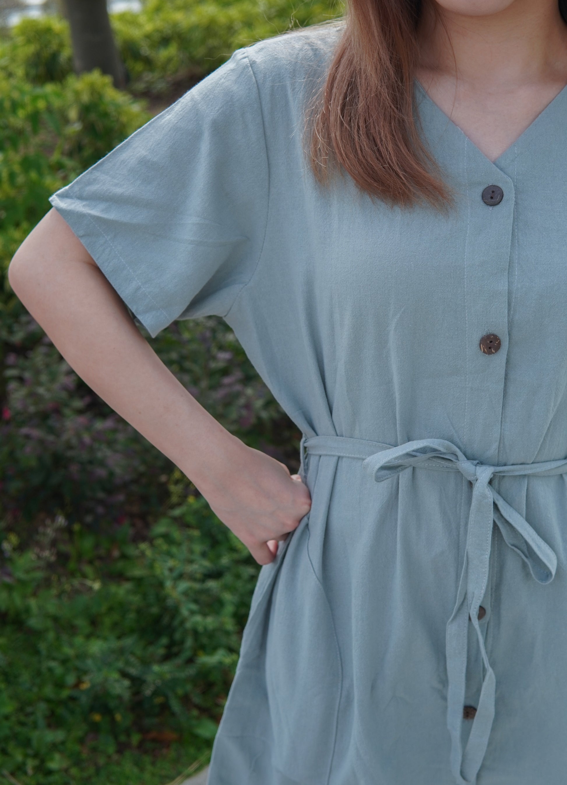 V領鈕扣口袋短版OPS | 霧藍綠 (現貨)
