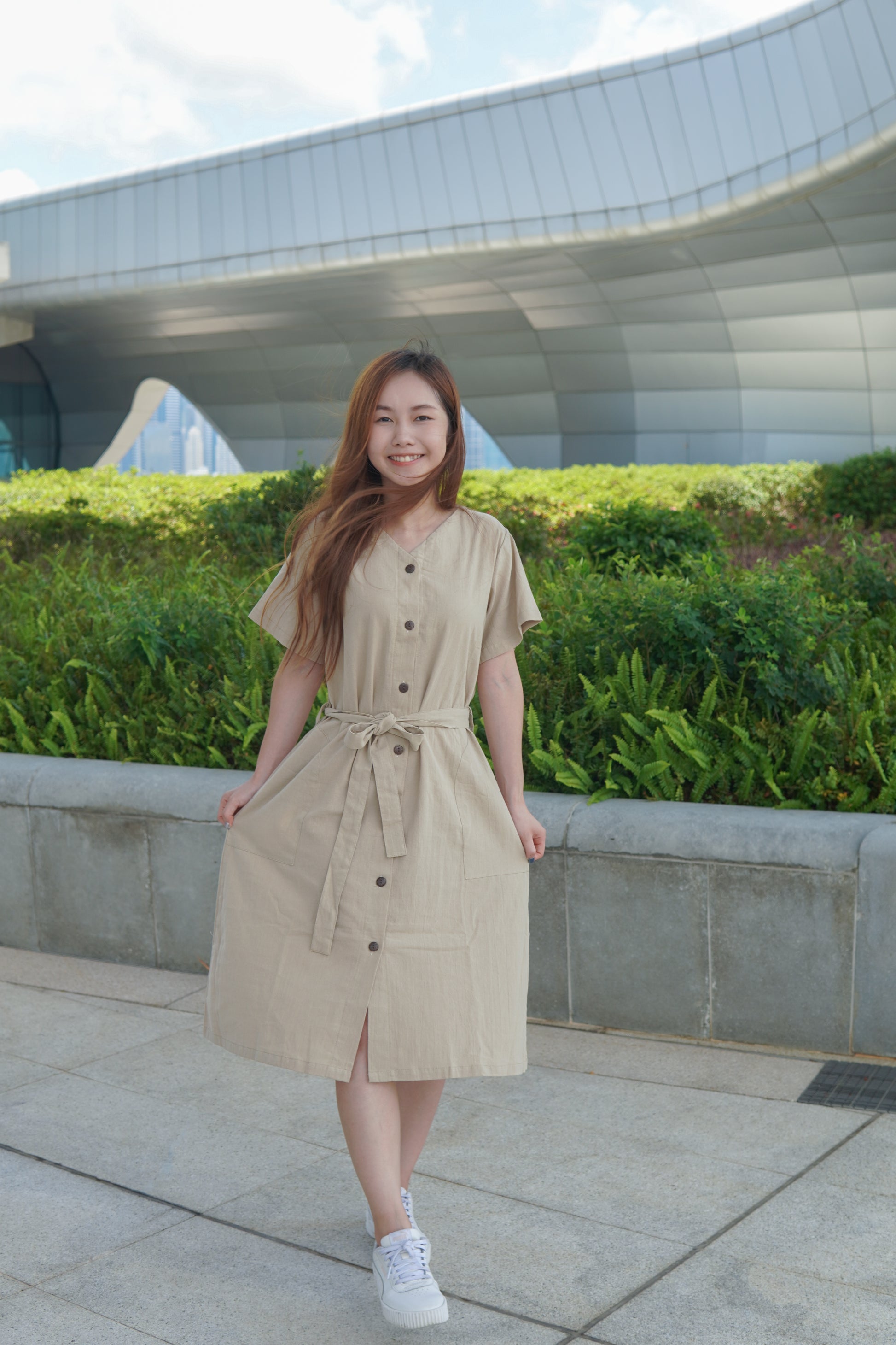 V領鈕扣口袋長版OPS | 可可 (現貨)