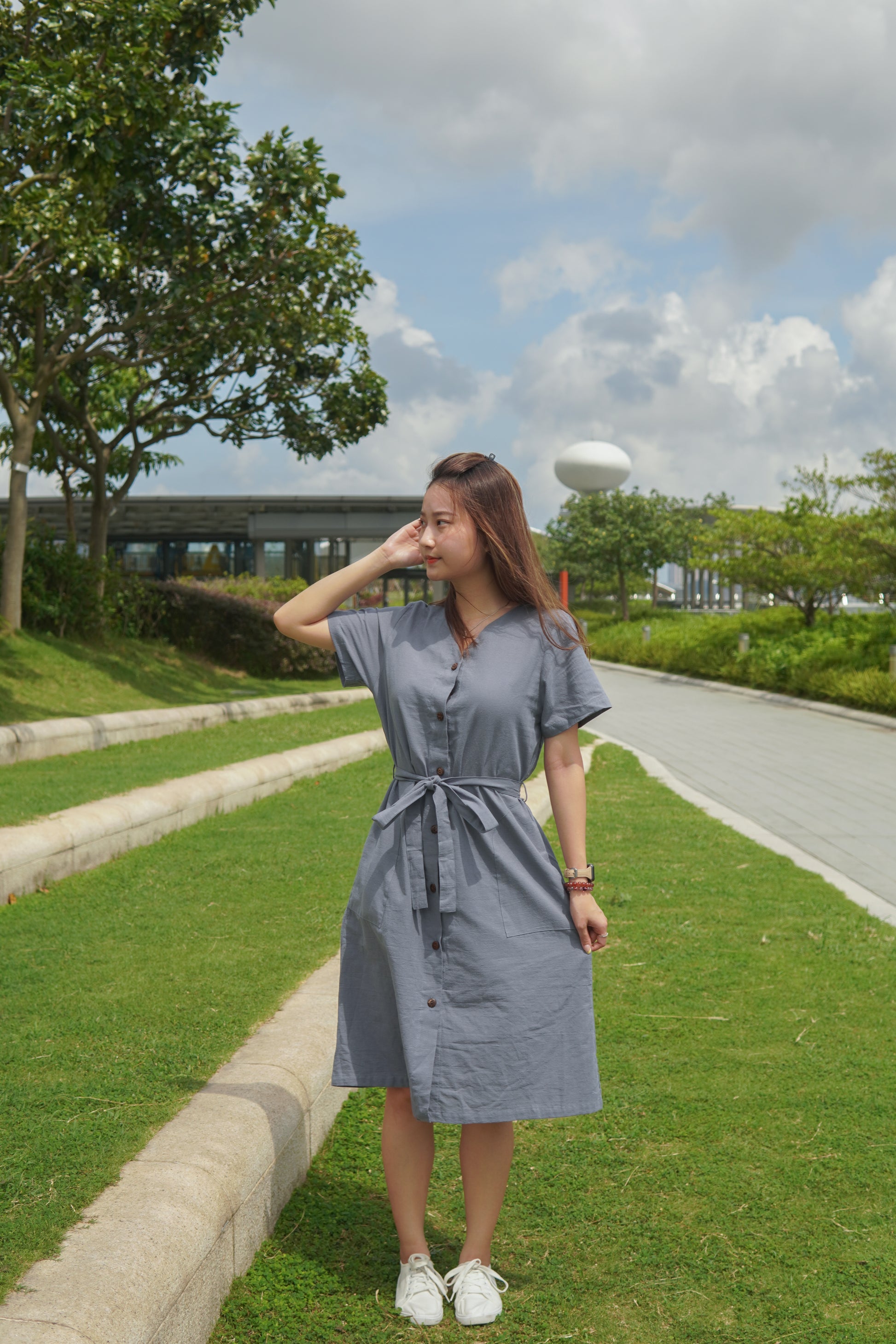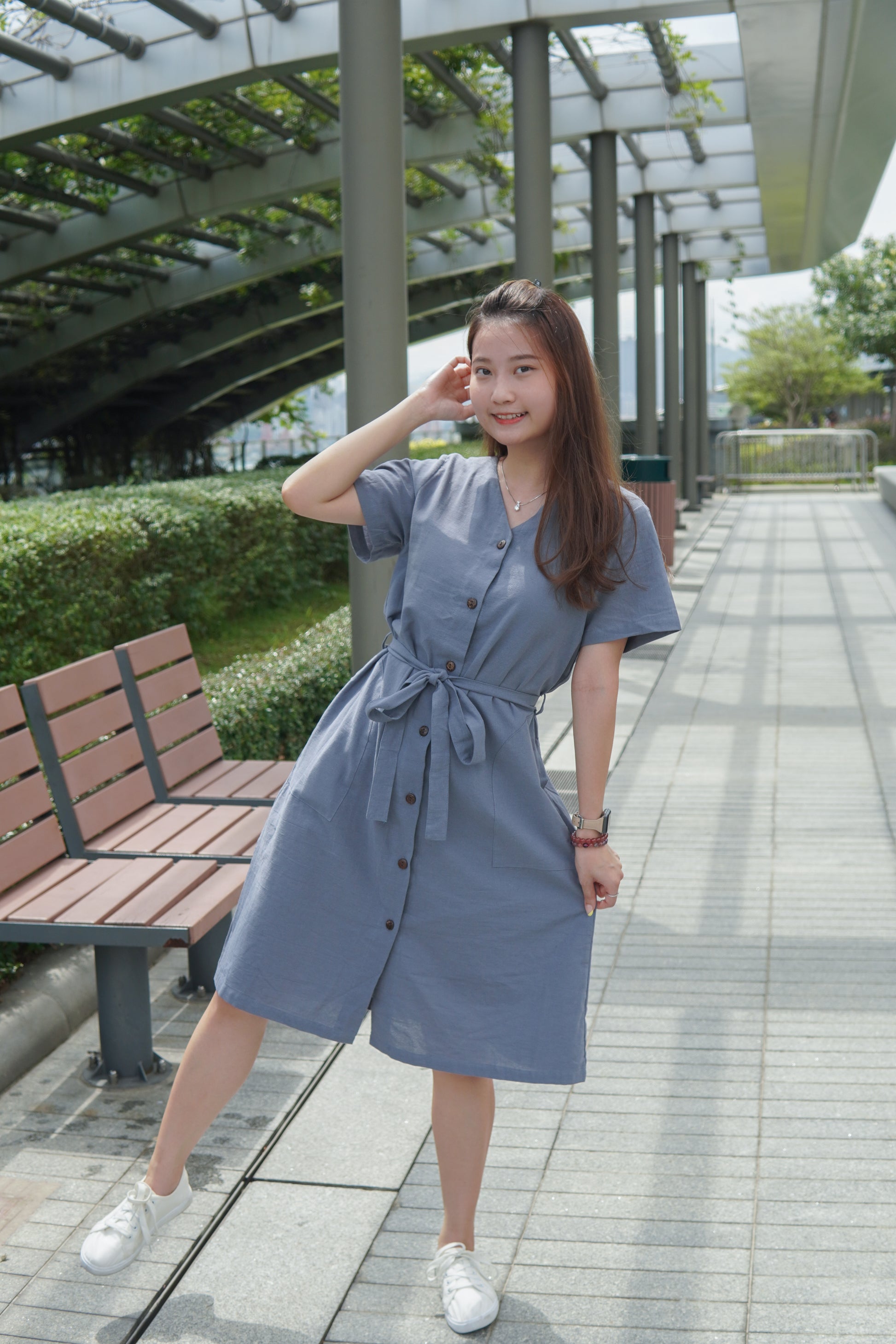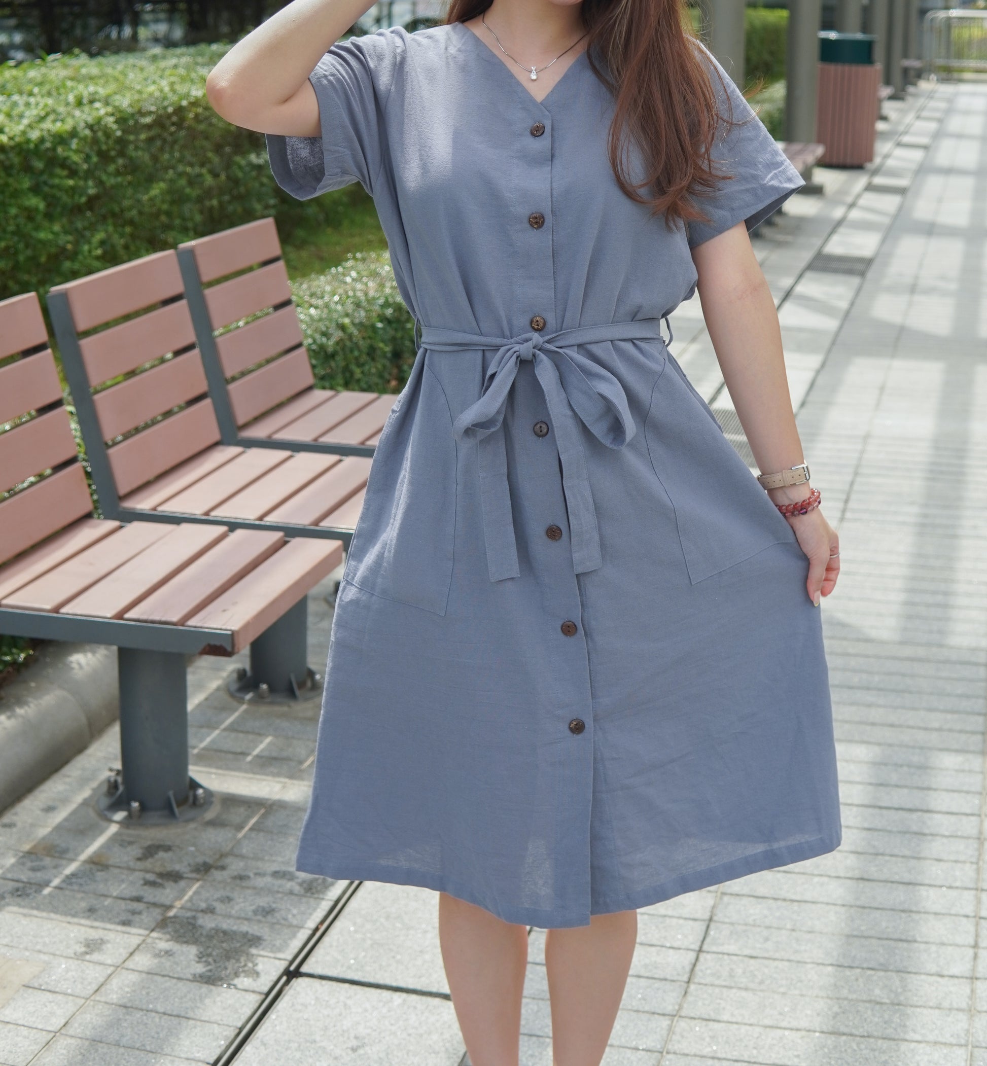 簡約一行鈕扣經典既連身裙款式📍