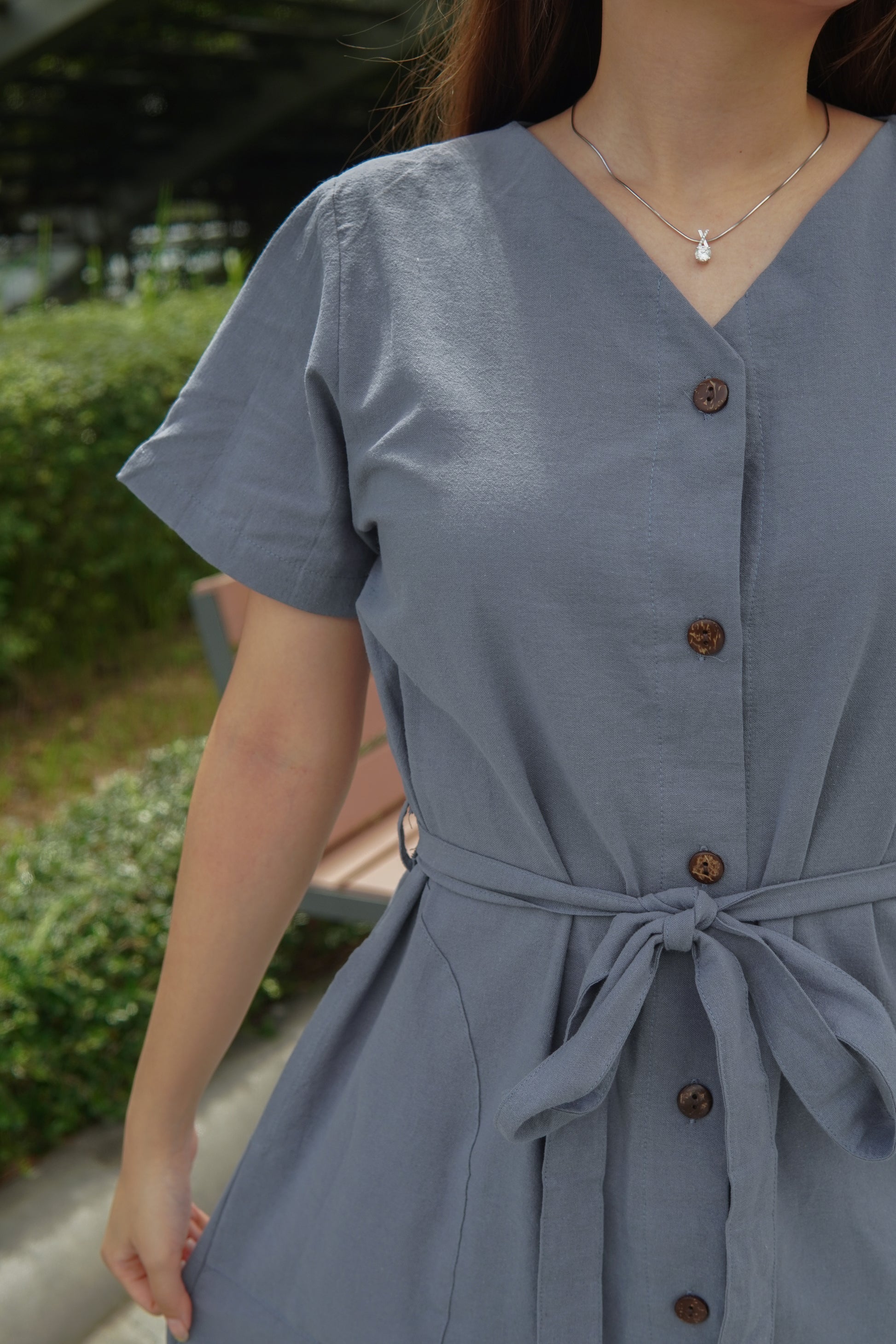 V領鈕扣口袋長版OPS | 灰藍 (現貨)