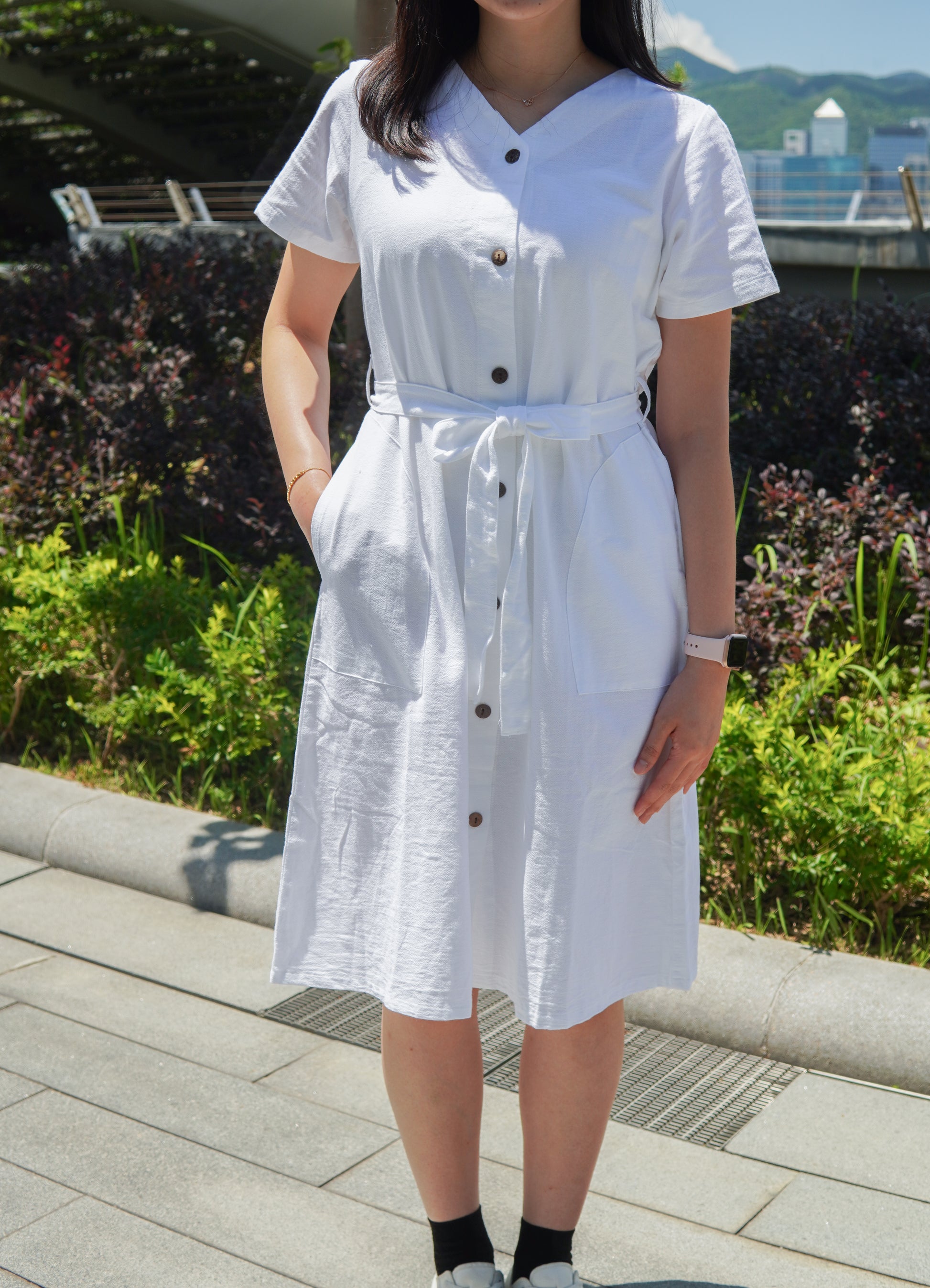 V領鈕扣口袋長版OPS | 白 (現貨)